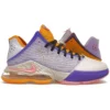 The Nike LeBron 19 Low Mismatch stands out as a performance-oriented pair of shoes, integrating Flywire cables for a tailored fit and responsive Zoom Air cushioning, wrapped in an array of multicolored tones.The Mismatch Nike LeBron 19 Low embraces a vibrant mix of colors and textures, showcasing individual designs on each shoe within the pair. One shoe boasts a Lakers-inspired gold shade, while its counterpart flaunts a dusty purple hue. The toe box overlays exhibit a split design black snakeskin on the left shoe and a solid peachy tone on the right. Crafted from a translucent woven material, the upper contributes to a contemporary and stylish aesthetic. Meanwhile, prominent visible Air Max unit and full-length Nike React foam deliver both support and comfort. With rubber outsoles providing traction, the mismatched theme continues through the inner booties, laces, and even the outsoles, enhancing the shoe’s distinctive appeal.The remarkable feature of the Nike LeBron 19 Low Mismatch lies in its mismatched design. The integration of diverse colors and materials on each shoe creates a visually captivating and individualistic appearance. The sneaker debuted for $160 on July 8, 2022.