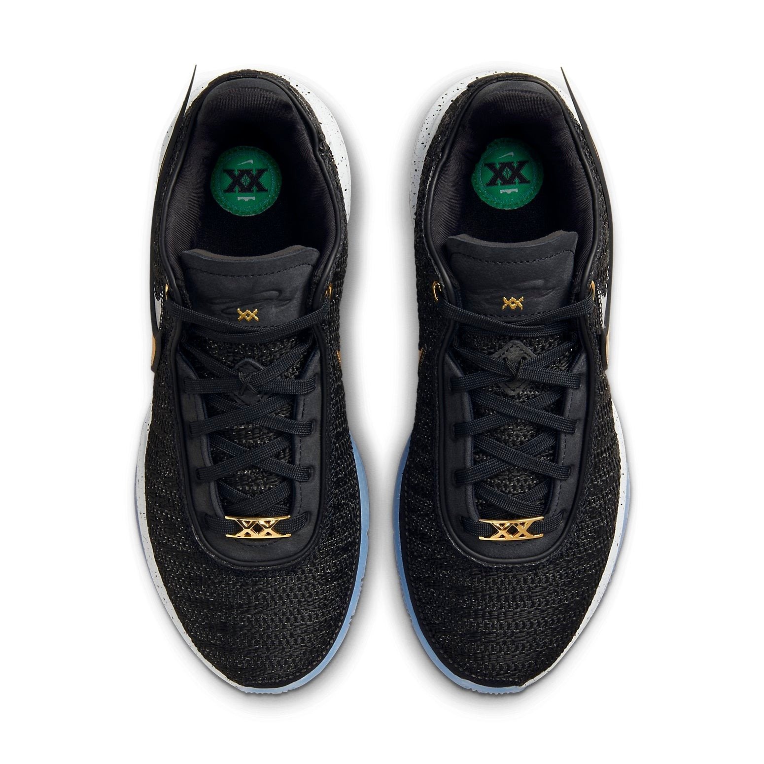 The Nike LeBron 20 Black Metallic Gold showcases gold accents thoughtfully incorporated into its design. These refined gold details grace the “XX” dubrae (lace aglets), the “XX” branding on the tongue, and the uppermost eyelets. At the heel of the shoe, you’ll find LeBron James’ signature patch, which signifies his endorsement and personal touch on the design. The upper of the Nike LeBron 20 Black Metallic Gold is crafted from a black knit material, providing a lightweight and breathable feel. The upper offers flexibility and comfort, making it suitable for intense on-court action. The Nike Swoosh logos on each side of the shoe are presented in a striking Metallic Gold finish. The outsole is constructed from a translucent material. What truly captivates our experts is the midsole of the Nike LeBron 20 Black Metallic Gold, which is predominantly in white with black specks. It incorporates advanced cushioning technology, ensuring responsiveness and impact protection during gameplay. The Nike LeBron 20 Black Metallic Gold was released on April 6th, 2023, available for purchase for $200.