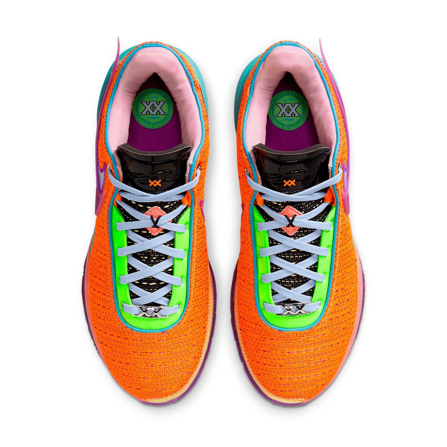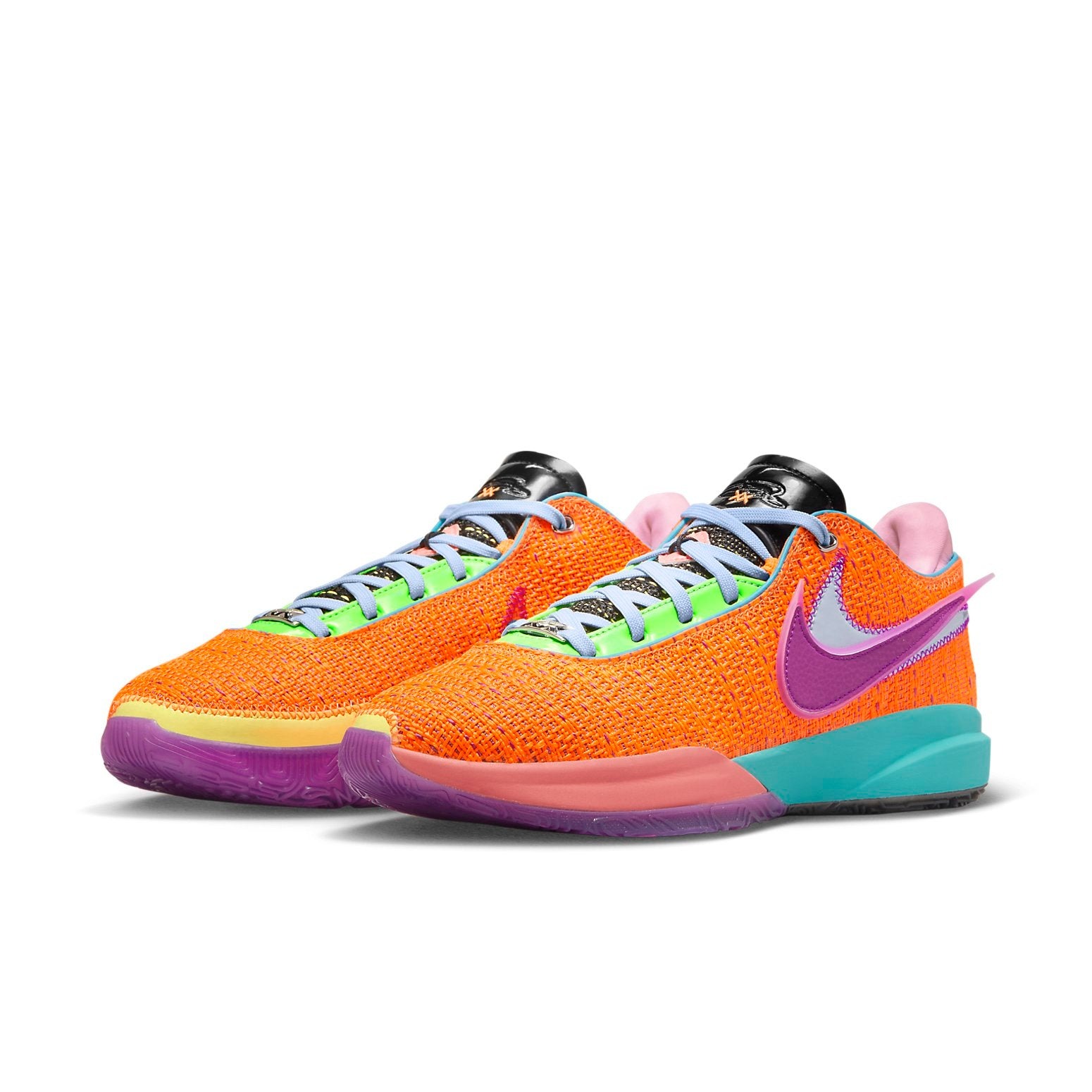The Nike LeBron 20 Chosen 1 takes inspiration from LeBron’s status as the “Chosen 1” a title he earned as a high school phenom in Ohio. The LeBron 20 Chosen 1 features a double-Swoosh design and comes with flat laces. The shoe’s midsole is made of a full-length Air Zoom unit, providing excellent cushioning and impact protection. The shoe features a Total Orange colorway with Vivid Purple, Green Strike, and Hot Punch accents. The outsole pattern provides excellent traction on the court, helping the wearer make quick and precise movements without slipping. We think that the notable feature of the Nike LeBron 20 Chosen 1 is its Knitposite upper material. This material is a blend of FlyKnit and Foamposite, providing both flexibility and durability. It is a lightweight and breathable material that conforms to the foot for a comfortable, locked-in fit. Additionally, the shoe’s “Knitposite” upper has a unique texture and design, making it stand out. The sneaker was released on March 10th, 2023, at a retail price of $200.