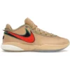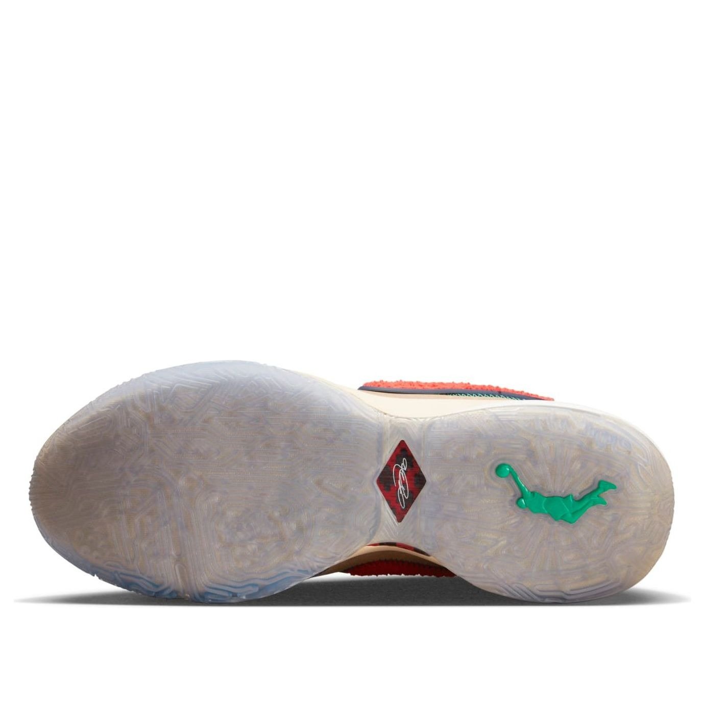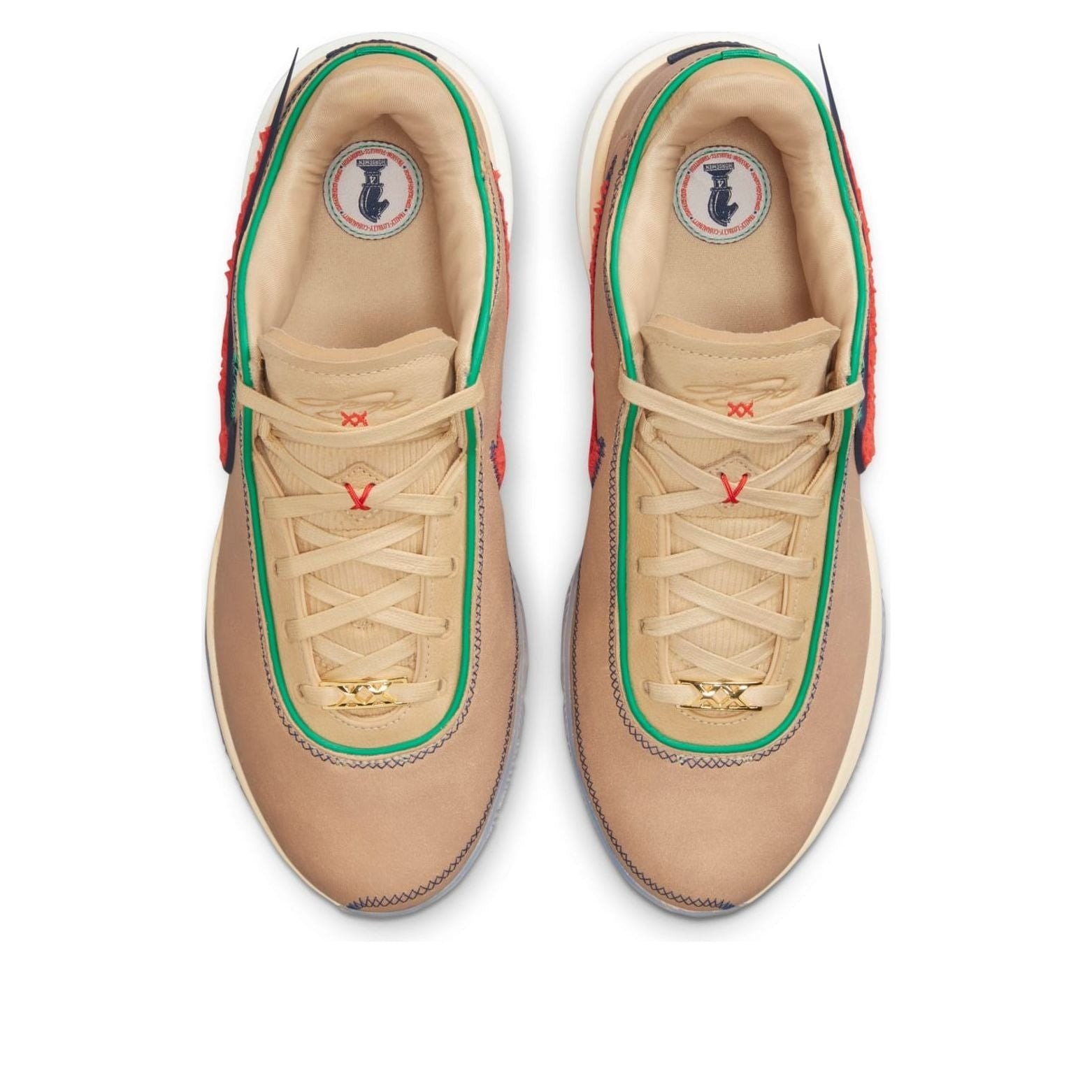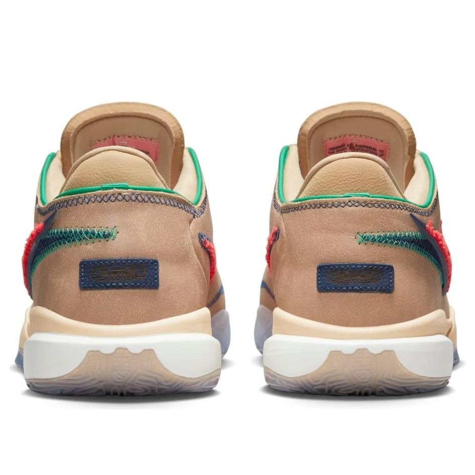 The Nike LeBron 20 Four Horsemen Sesame is a basketball sneaker from the Nike Lebron 20 lineup released as part of the “Four Horsemen” collection, which pays homage to LeBron James’ inner business circle.This Nike Lebron 20 features a cracked leather upper dressed in Sesame accented by a Bright Crimson chenille Swooshes on the sides. The lateral Swoosh has a Midnight Navy outline and is stacked on a black Swoosh with exposed green stitching on the outline. More contrasting hues appear on the bright green piping running through the eyestays and collar. Other details include “XX” detailing on the exposed foam tongue and Metallic Gold lace dubrae, Lebron s signature christened on the tongue, and the “Four Horsemen” logo in the form of a knight chess piece stamped on the insoles. A two-tone Zoom Air cushion foam midsole rests on an Icy Blue translucent rubber outsole with a green Jumpman logo.Something we love about this Nike Lebron 20 is its distinctive color scheme, premium materials, and unique design elements, which sets it apart from other LeBron 20 colorways. The Nike LeBron 20 Four Horsemen Sesame was released on May 7th, 2023, retailing at $210.