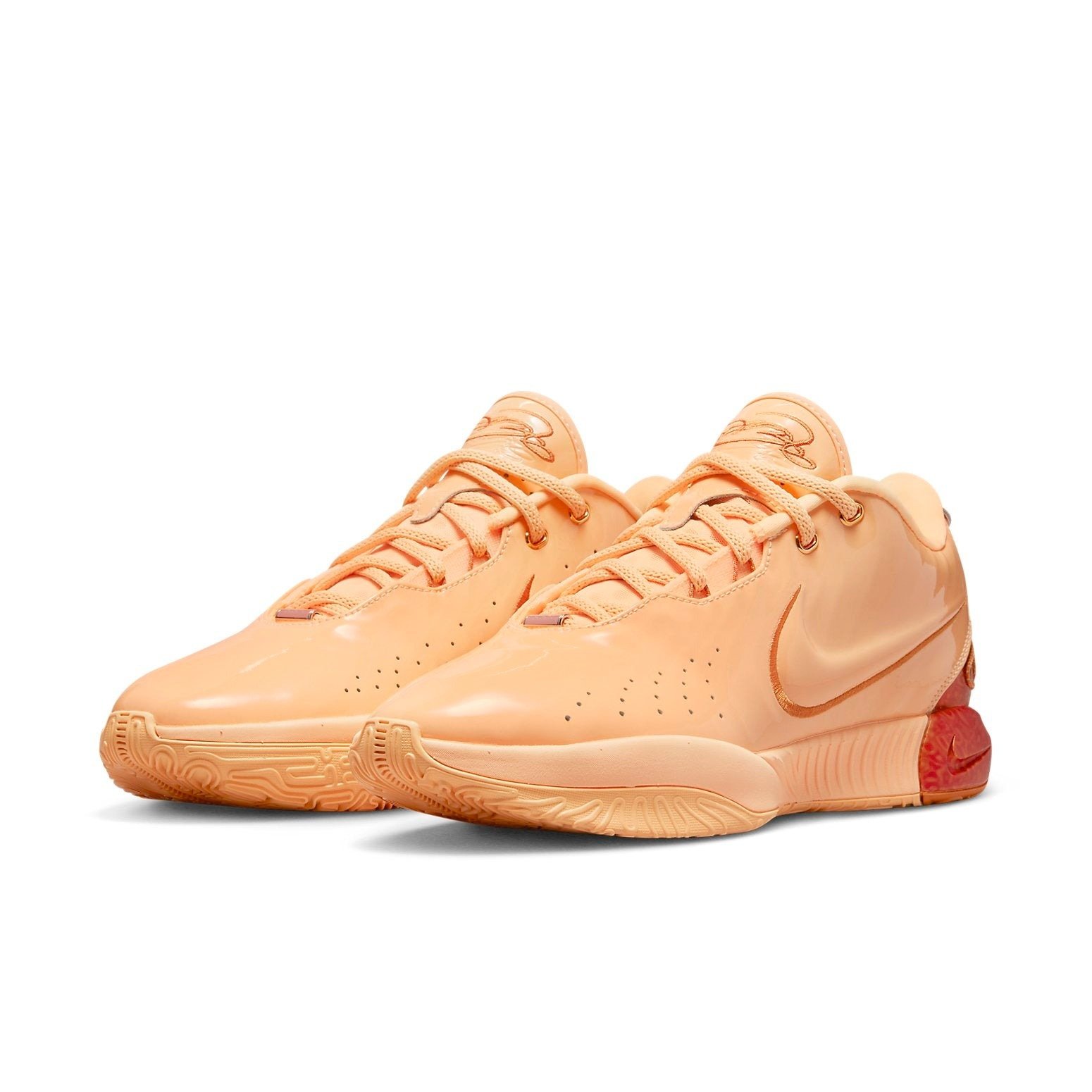 The Nike LeBron 21 Melo Melo is a performance shoe that takes its design inspiration from the rare Melo Melo pearl.This iteration of the Nike LeBron 21 features a shiny leather upper in Melon Tint. The outer side features perforations around the toe, while the inner side has perforations running from the forefoot to the heel. The Nike Swoosh also appears on both sides, on the outer side more subtly with a darker outline on the bottom, and on the inner side as a striped version. A darker orange color forms the heel, where XXI branding is seen. The tongue features LeBron s signature, and the shoe sits on top of a heel with Air Zoom technology. What we like most about this shoe is the shine of the upper, which truly mimics the shine of the Melo Melo pearl. The Nike LeBron 21 Melo Melo was released on October 19, 2023, for $200.