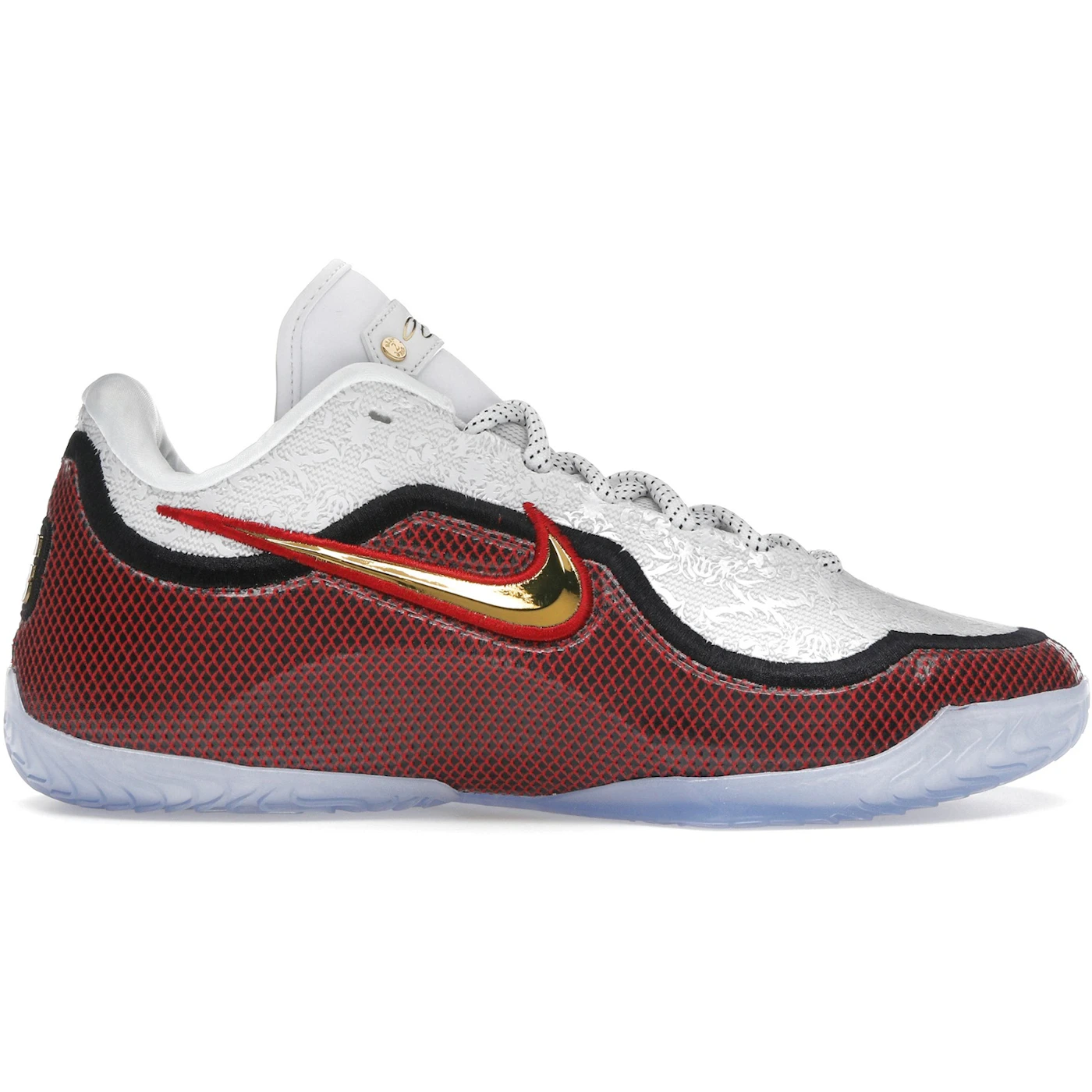 The Nike LeBron 23 Grand Opening (Translucent Outsole) features a White/Metallic Gold/University Red/Black colorway. This Nike LeBron 23 was first released for $210 on November 01, 2025.