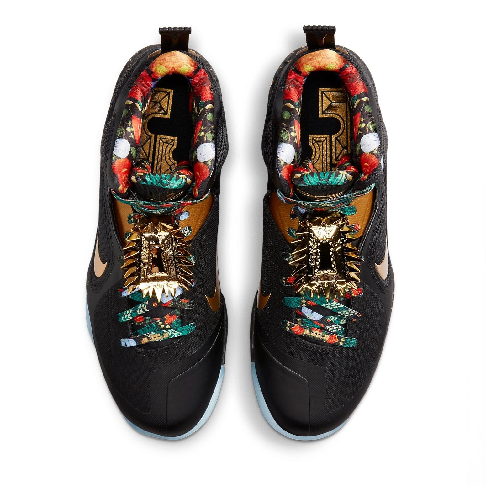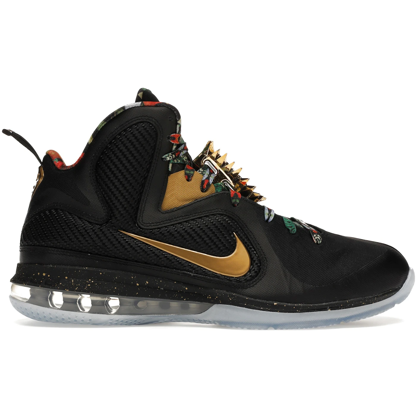 Originally debuted as a Player Exclusive in 2011, the Nike LeBron 9 Watch The Throne pays homage to Jay-Z and Ye’s (formerly known as Kanye West) 2011 joint studio album Watch The Throne. A black mesh and carbon fiber upper provide a muted background, allowing gold detailing on the sculptural lace lock and Swoosh that references the Riccardo Tisci-designed album cover to shine. At the base, a semi-translucent Air Max sole offers stability and support.The Nike LeBron 9 Watch The Throne released in January of 2021 and retailed for $230.