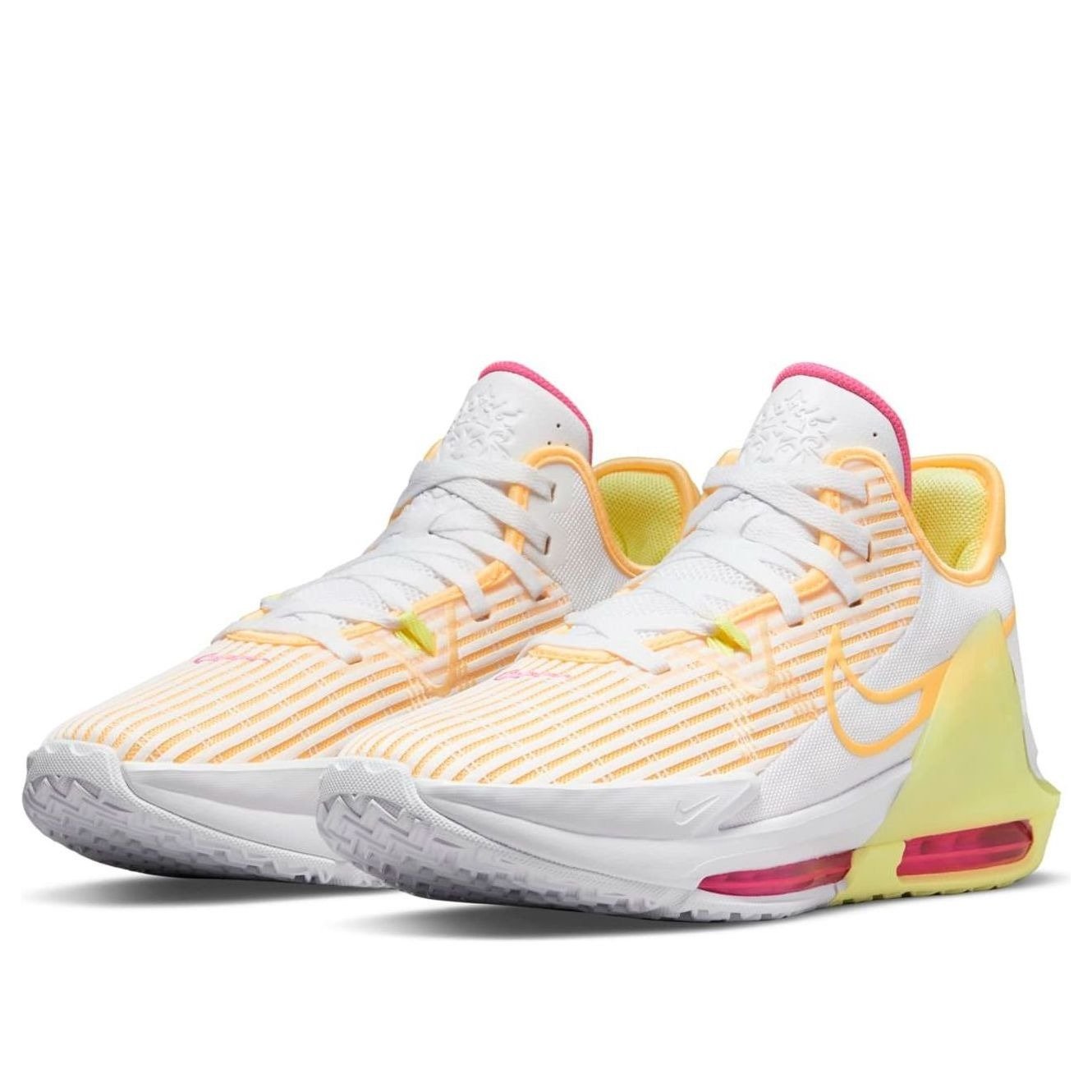 The Nike LeBron Witness 6 Light Melon Orange was released as part of the Nike LeBron Witness series. The Light Melon Orange Nike LeBron Witness 6 is designed with a lightweight, breathable mesh upper that offers ventilation and durability on the court. It features a TPU mudguard for added protection and stability, ensuring that you can make quick cuts and moves without the worry of sliding or slipping. The foam midsole ensures that the shoe will keep your feet cushioned and comfortable, protecting them from the impact of the ground. The outsole of the shoe is made of rubber and is designed with a unique traction pattern that provides grip and traction on the court. Our experts say that one of the significant features of the Nike LeBron Witness 6 Light Melon Orange is the Zoom Air cushioning technology in the sole, which provides a responsive and comfortable feel during those high jumps and dives. The shoe was released on October 12th, 2021 at a retail price of $110.