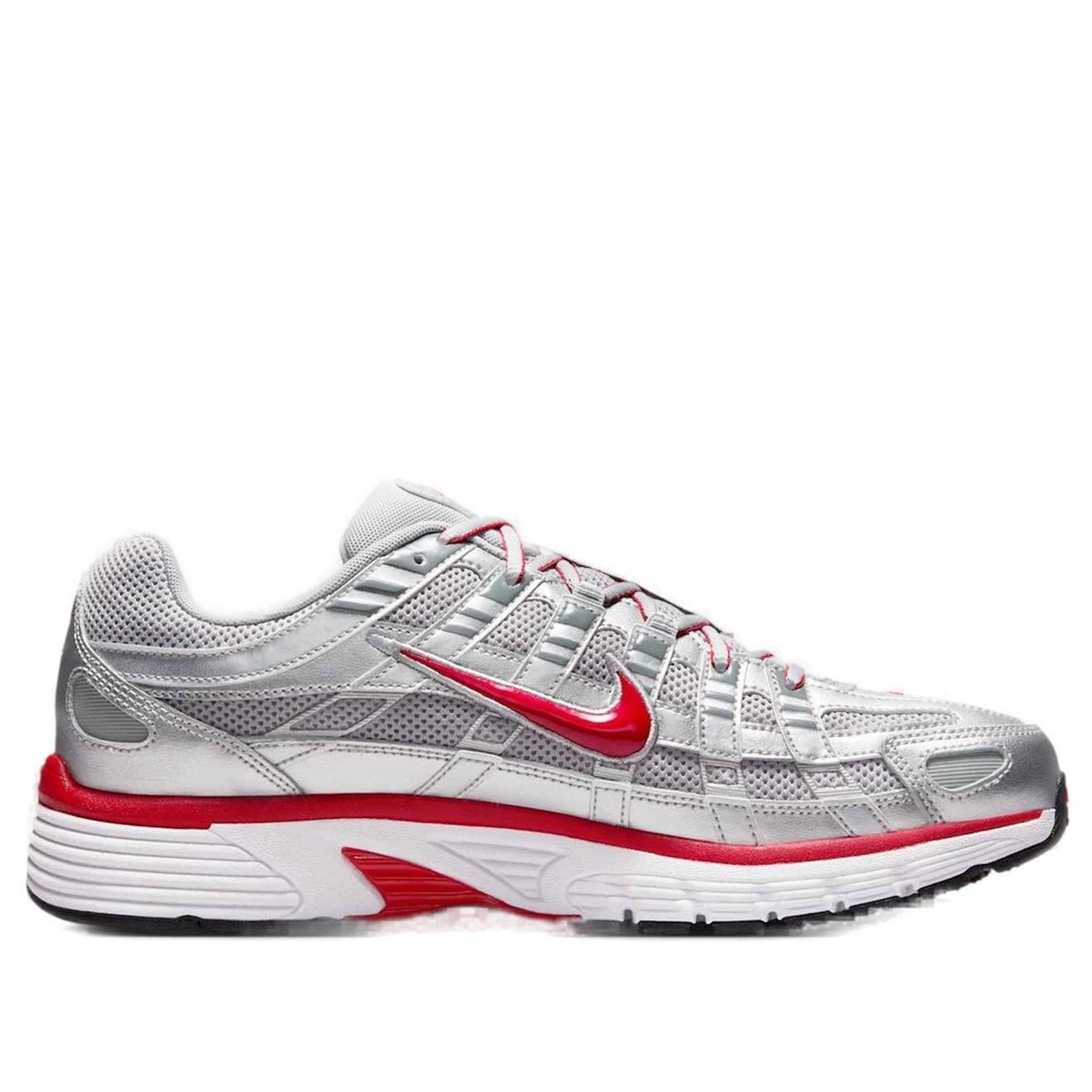 The Nike P-6000 Metallic Silver Gym Red features a Metallic Silver/Flat Silver/Cool Grey/Gym Red colorway. This Nike P-6000 was first released for $120 on February 20, 2025.