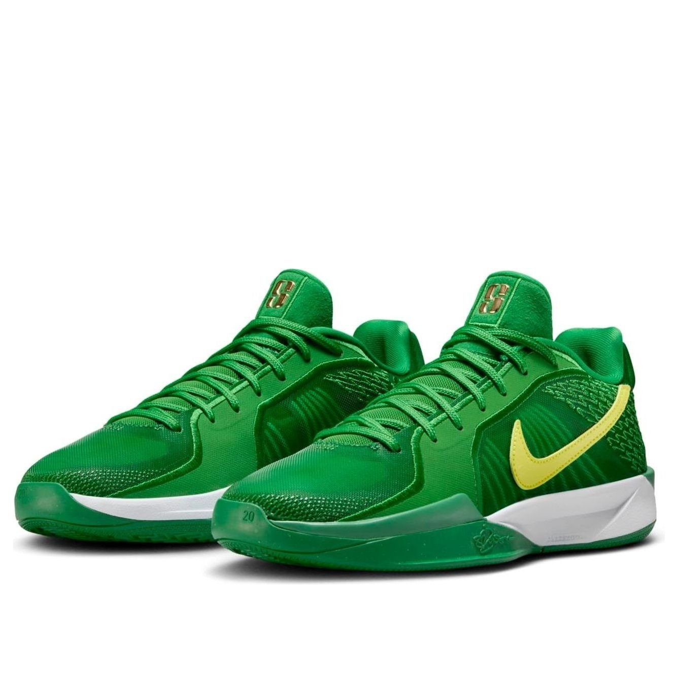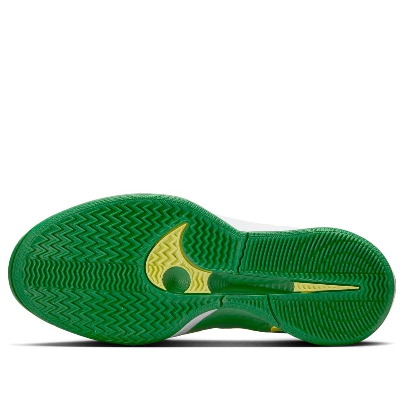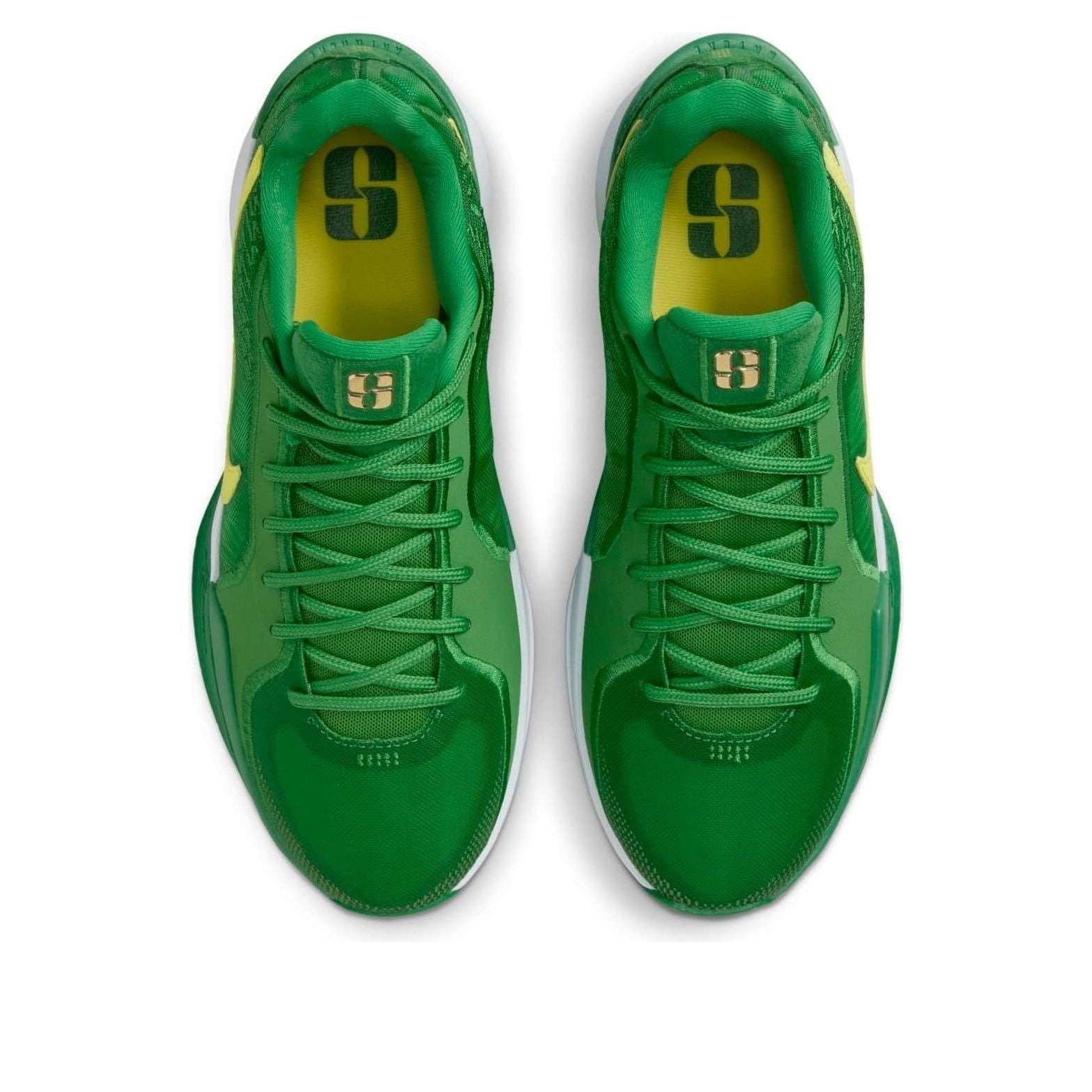 The Nike Sabrina 2 Oregon (Women’s) arrives in a lively mix of green and yellow, paying tribute to Sabrina Ionescu’s strong ties to the University of Oregon. The Oregon Nike Sabrina 2, designed for women, is dressed in the University of Oregon’s iconic colors: green and yellow. The mesh and textile upper is primarily green, featuring tonal embroidered detailing and a yellow signature Swoosh. A padded low-cut collar provides a snug fit, and the sneaker features an internal band system that offers midfoot lockdown. The sneaker features advanced Nike technology, including a Cushlon 3.0 foam midsole housed within a firmer Cushlon form carrier, with a Zoom Air unit in the forefoot for added responsiveness. Our experts love the Nike Sabrina 2 Oregon (Women’s) tribute to Sabrina Ionescu’s legendary career at the University of Oregon, celebrating her record-breaking triple-doubles and championship mindset. The women’s sneaker was introduced for $130 on October 24, 2024.