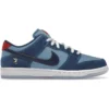 The Nike SB Dunk Low Pro Why So Sad features a mixture of colors, with coastal blue and light current blue being the dominant hues.The upper of this Low Nike SB Dunk is made from leather material and there is a white Fat-style SB lacing system. The lateral heel of this shoe features an embroidered chicken that seems to be riding on a skateboard. Additionally, the heels and the tongues of this sneaker have Nike SB branding.The Nike SB Dunk Low Pro Why So Sad retailed at a price of $120 at the time of its release on November 4, 2022.