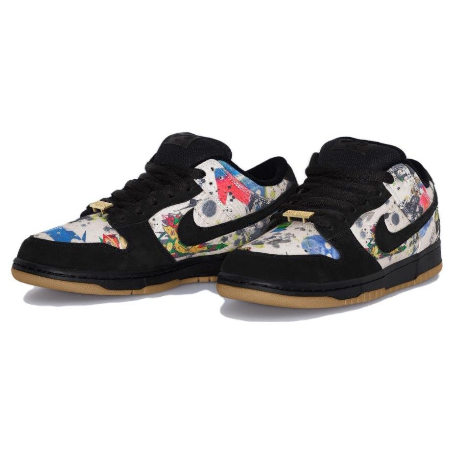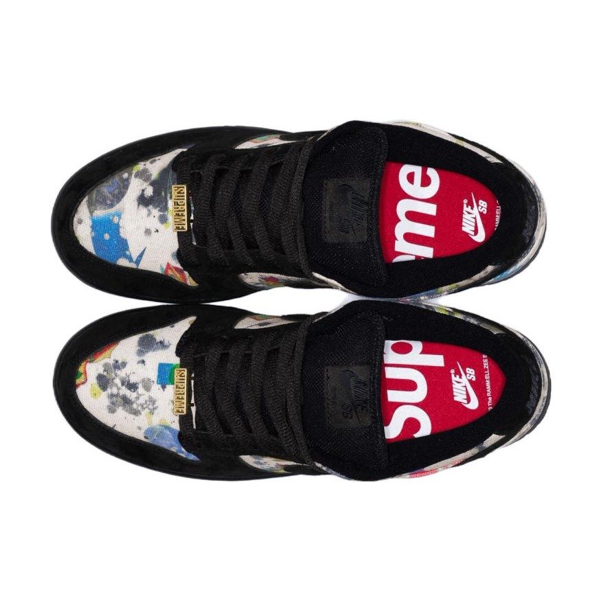 Supreme has once again teamed up with Nike for another highly coveted SB Dunk Low. The Nike SB Dunk Low Supreme Rammellzee released on August 31st, 2023, for a retail price of $138. The sneaker sold out quickly at Supreme locations globally. This unique SB Dunk Low features the art of the late Rammellzee, who has collaborated with Supreme numerous times over the years, including way back in 2003. The New York artist lends his iconic style to the upper of this limited edition sneaker, which showcases his unique graffiti style motifs. The Nike SB Dunk Low Supreme Rammellzee dropped on August 31st, 2023, for a retail price of $138. Lock in your pair today on Newsole.