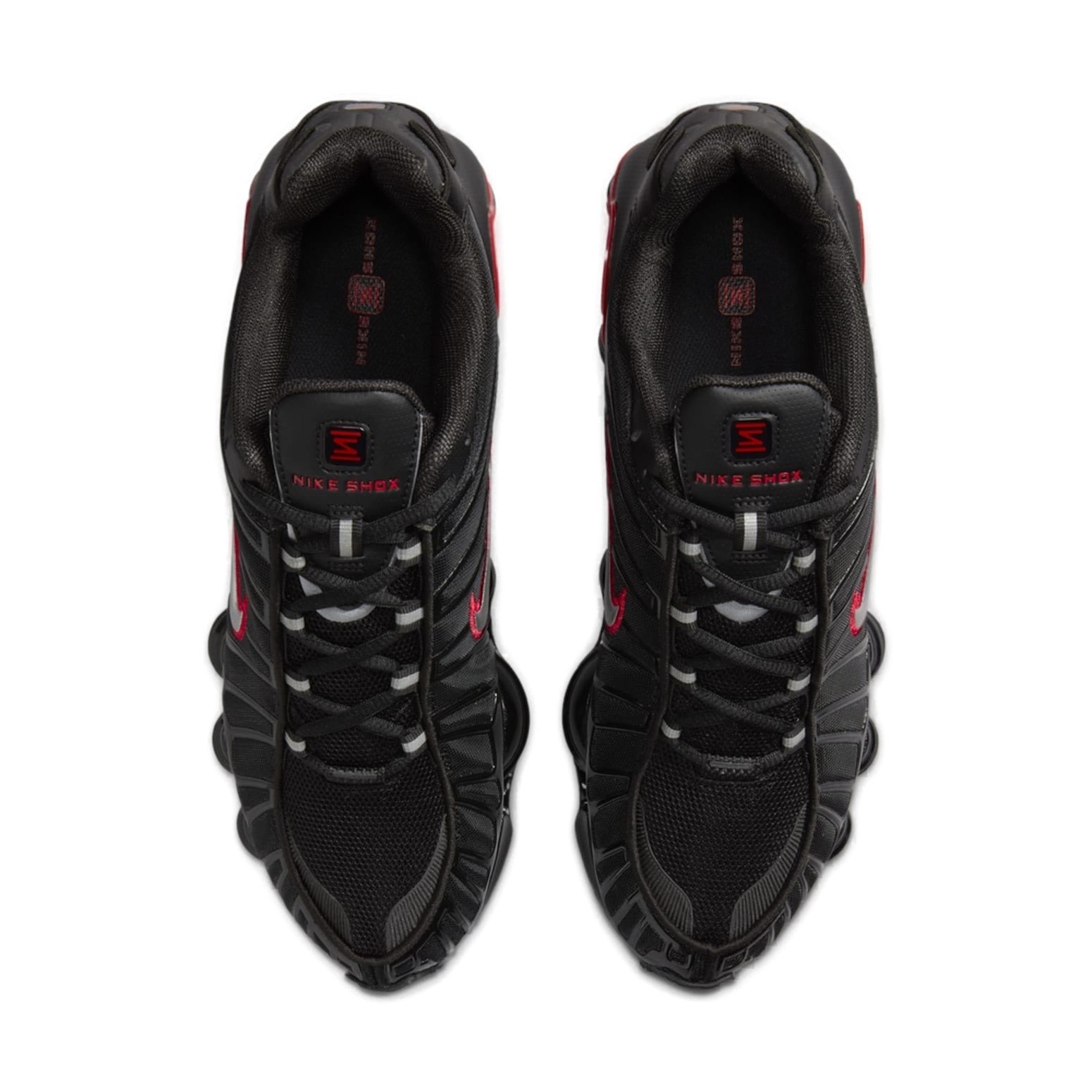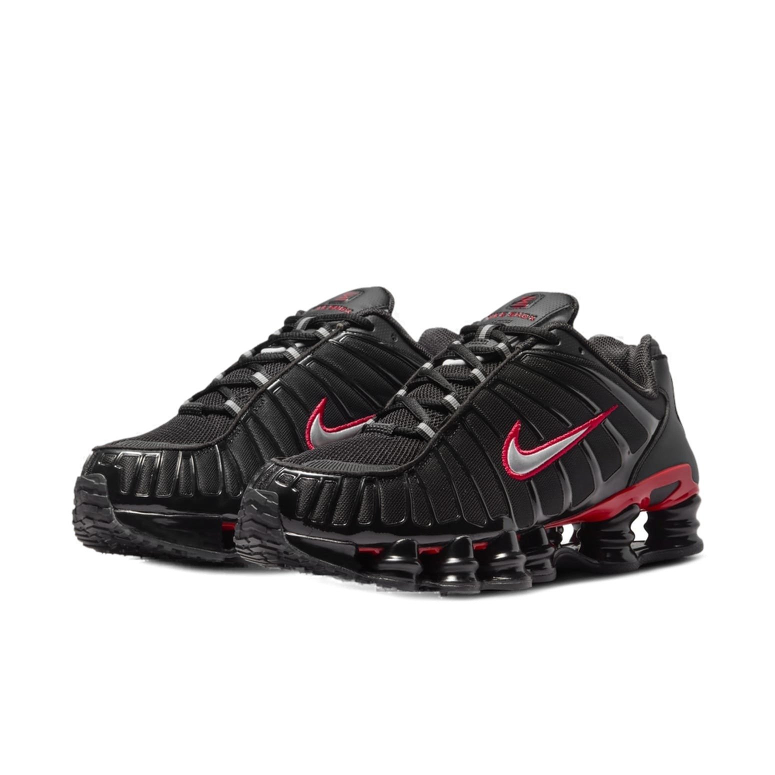 The Nike Shox TL Black University Red features a Black/University Red/Metallic Silver colorway. This Nike Shox TL was first released for $170 on October 04, 2024.