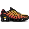 The Nike Shox TL Sunrise is a sleek and stylish sneaker that combines comfort and performance. The upper is made of a breathable mesh material that provides ventilation and support, while the iconic Shox technology in the sole offers responsive cushioning and shock absorption. The colorway features a gradient of orange and yellow hues, reminiscent of a sunrise, with black accents on the Swoosh and heel. Released on August 1st, 2019, the Nike Shox TL Sunrise retails for $170. Whether you’re hitting the gym or running errands, these sneakers are sure to turn heads and keep your feet feeling great.