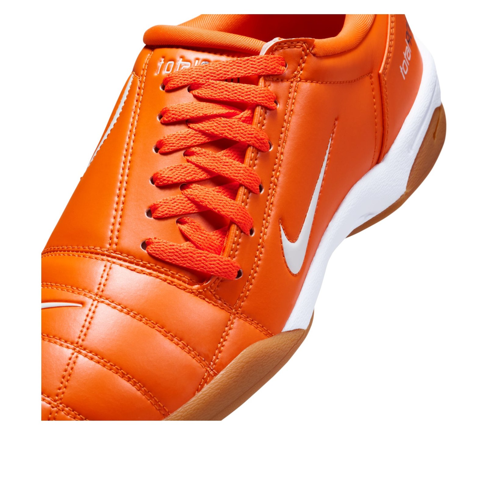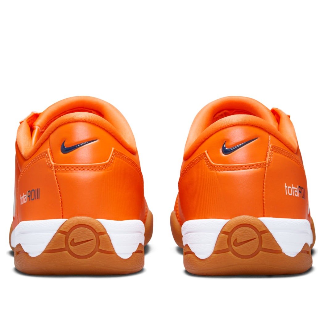 The Nike Total 90 3 SP Safety Orange is an indoor soccer style athletic shoe featuring a leather upper in Safety Orange, crafted with a quilted construction, accented by side skewed lacing in coordinating Safety Orange. The sides display the Nike Swoosh and 90 branding in White, accented by Total 90 III branding at the heel. The minimal Gum Medium Brown outsole hugs the White midsole. American sneaker brand Nike keeps their aficionados interest piqued by making references with their releases. The Total 90 3 first appeared as a pro soccer cleat at the 2004 UEFA European Championship in Portugal. Nikes designers intended to create a cleat that would be comfortable throughout the entire 90 minute match, hence the name. Decades later, Nike has revitalized the style with an indoor style sole for street wear. Our experts feel that the best feature of the Total 90 3 is its Safety Orange upper, a shade rarely used in monochrome styling. The Nike Total 90 3 SP Safety Orange released on April 1, 2025, and retailed for $100.