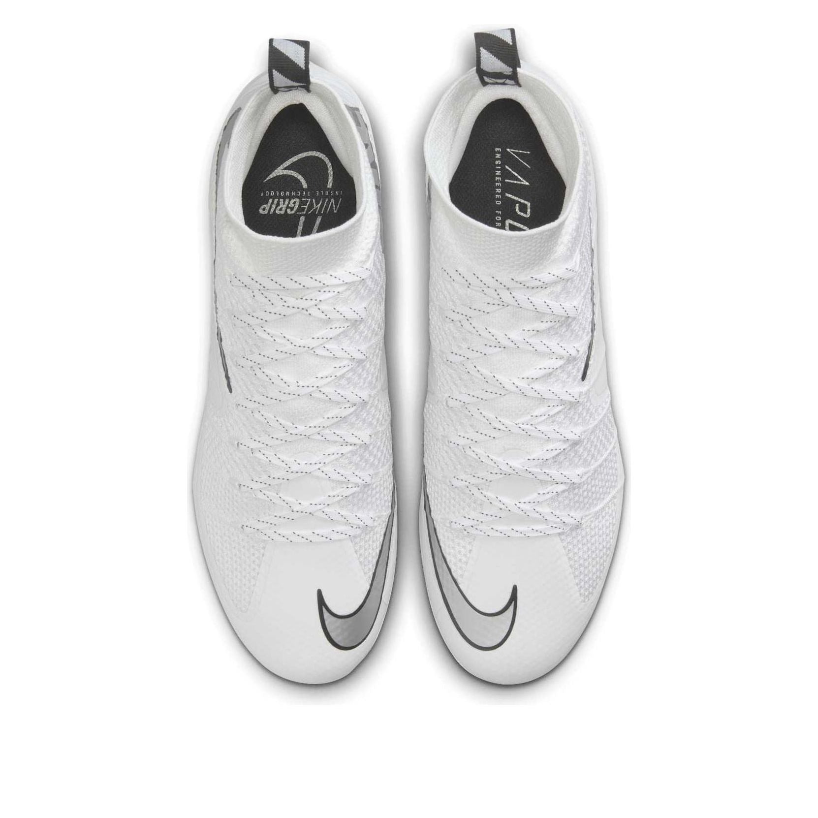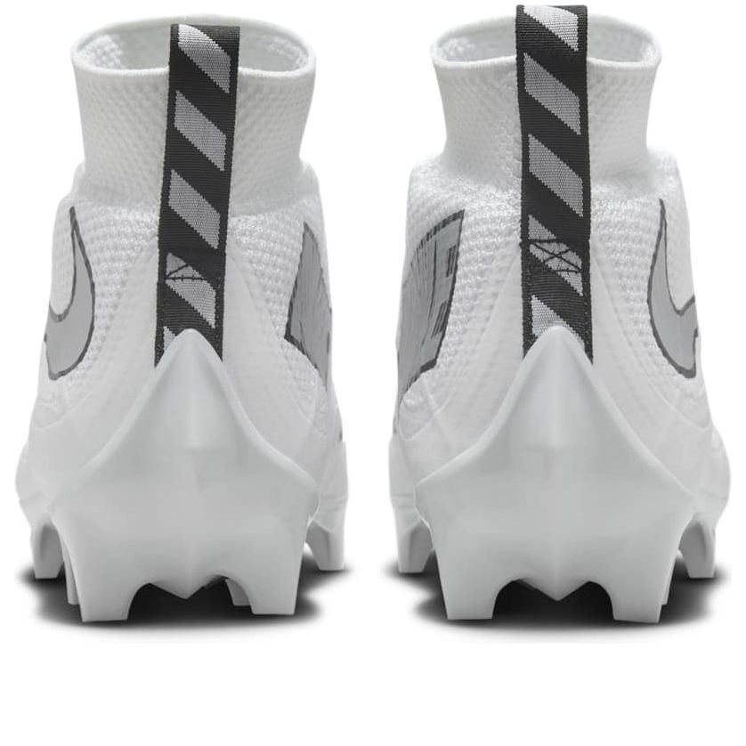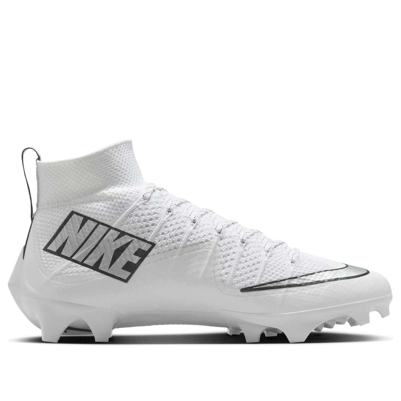 Engineered for playmakers who live in the open field, the Nike Vapor Edge 360 Untouchable Mid in White/Metallic Silver pairs a crisp, streamlined look with fast, responsive performance. The Vapor Edge 360 plate is designed for multi-directional speed, giving you confident traction for quick cuts, bursts, and sudden stops. A lightweight, breathable upper helps keep your feet cool under pressure, while the mid-cut collar adds just the right blend of ankle support and freedom of movement. Subtle Metallic Silver accents highlight the sculpted lines, creating a clean, modern aesthetic that looks sharp under the lights and on the highlight reel. Built with game-speed comfort in mind, this mens football cleat focuses on lockdown and stability from snap to whistle. Strategic stud placement promotes powerful toe-off and controlled change of direction, and an internal framework helps keep your foot securely planted through lateral moves. Cushioning underfoot smooths out hard landings without adding bulk, and a durable toe zone adds resilience in high-wear areas. Finished in the versatile White Metallic Silver colorway and tagged with style code FQ0235-102, the Nike Vapor Edge 360 Untouchable Mid blends pro-level tech with timeless sideline style to elevate your performance and your presence on the field. Our team thinks this product is great for skill players seeking fast acceleration, sharp cuts, and reliable mid-cut support, and our team loves this product because it blends sleek looks with dependable traction and lockdown.