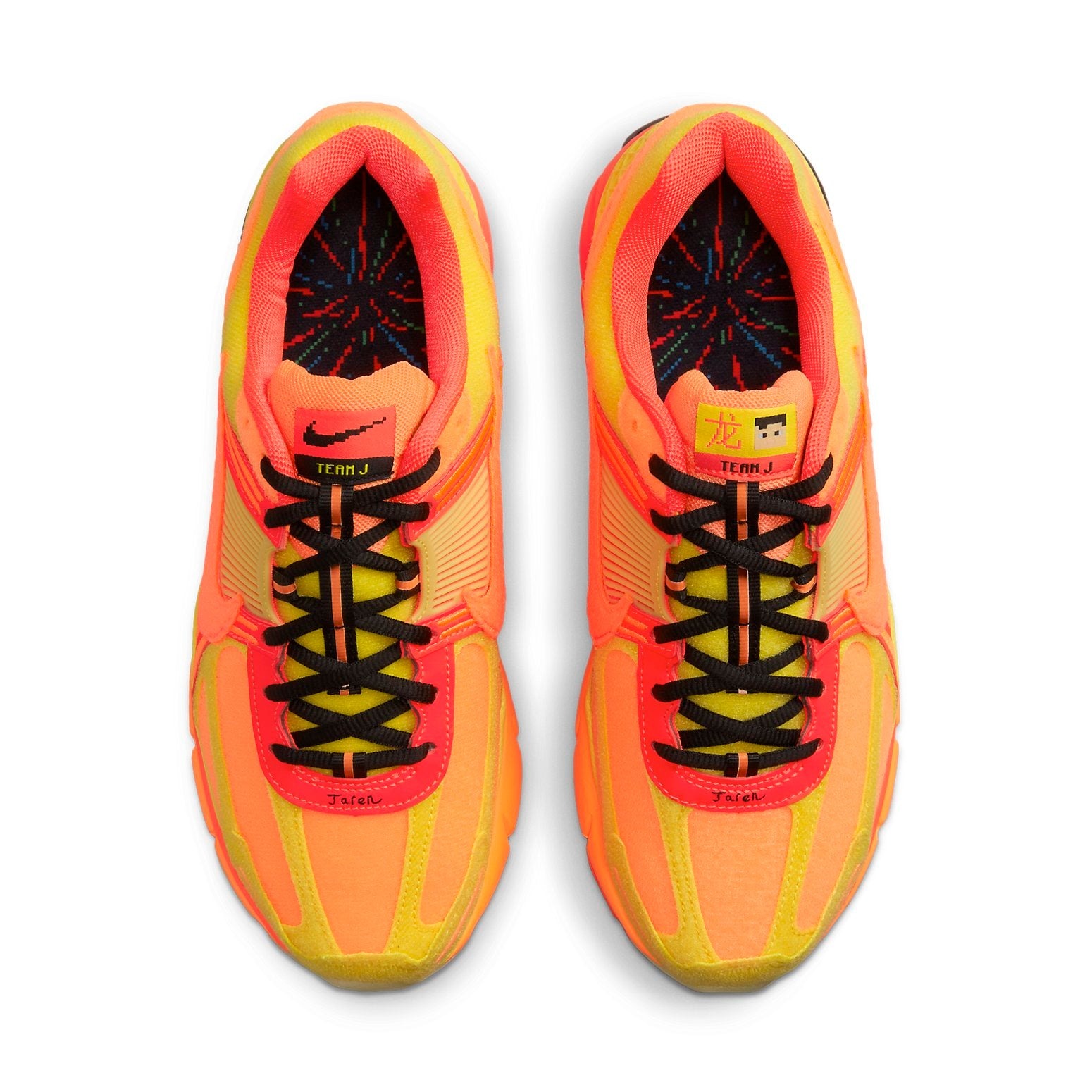 The Nike Zoom Vomero 5 Doernbecher features a vibrant color palette with highlights of orange and yellow. It is constructed with a combination of mesh and synthetic materials for breathability and durability.The shoe showcases the iconic Swoosh logo detail on the sides, while the round toe and front lace-up fastening offer a secure and adjustable fit. The sneaker also includes a logo patch at the tongue and a branded insole for added style and comfort. With its rubber sole, the Vomero 5 Doernbecher provides traction and support.One of the features of the Vomero 5 Doernbecher by Nike, appreciated by our experts, is its cushioning and support. The shoe incorporates Zoom Air technology in the midsole, providing responsive and lightweight cushioning, ensuring a comfortable stride, and reducing the impact on the feet. The Nike Zoom Vomero 5 Doernbecher was released on February 25th, 2023, and had a retail price of $180.