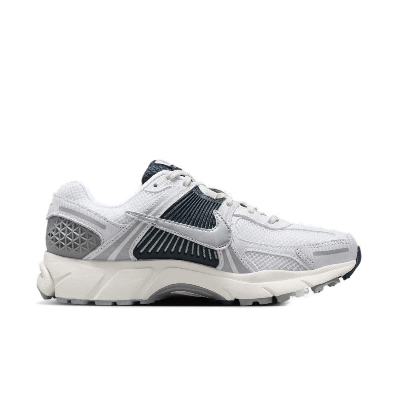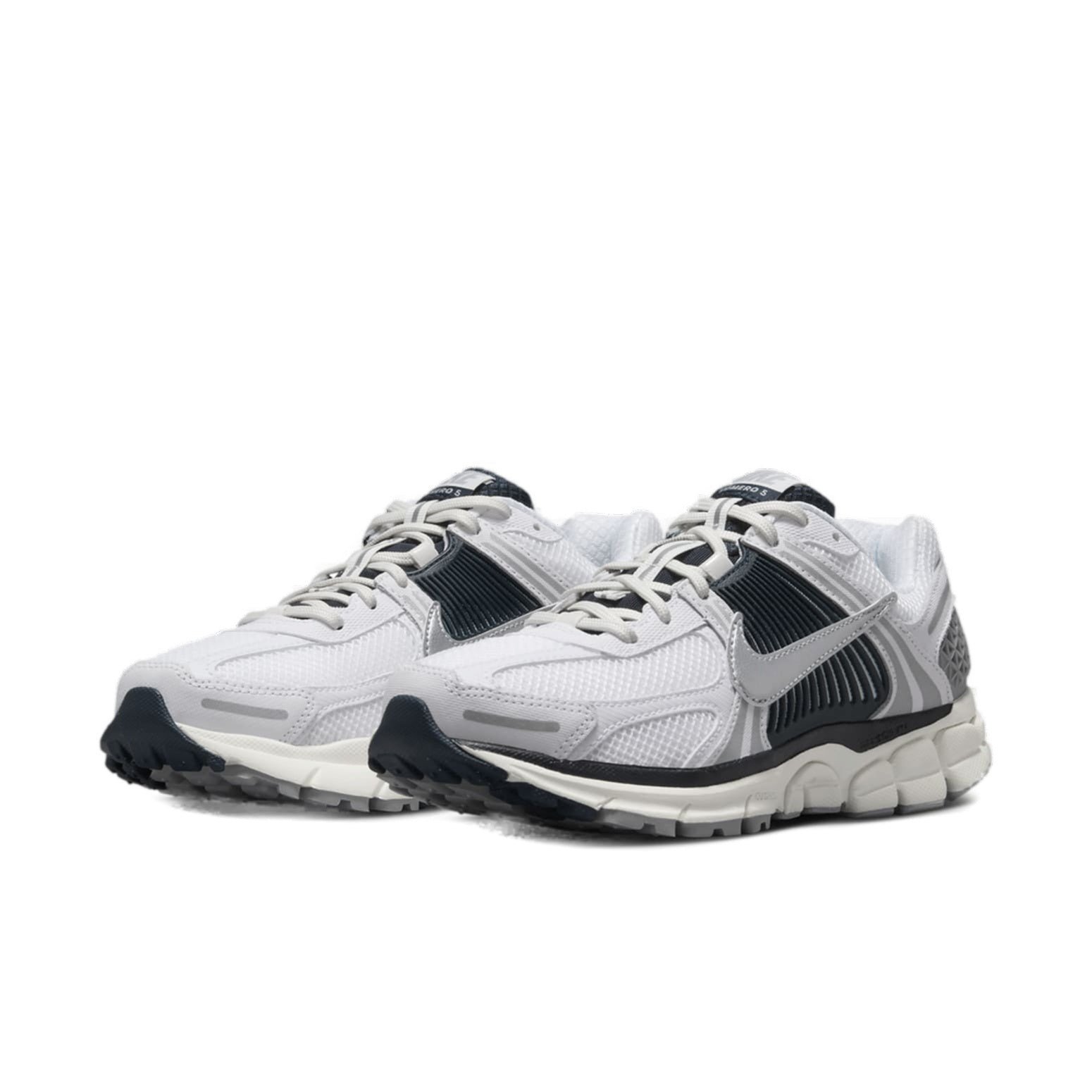 The Nike Zoom Vomero 5 White Armory Navy (Women’s) features a White/Armory Navy/Sail/Metallic Silver colorway. This Nike Zoom Vomero 5 was first released for $160 on September 20, 2024.