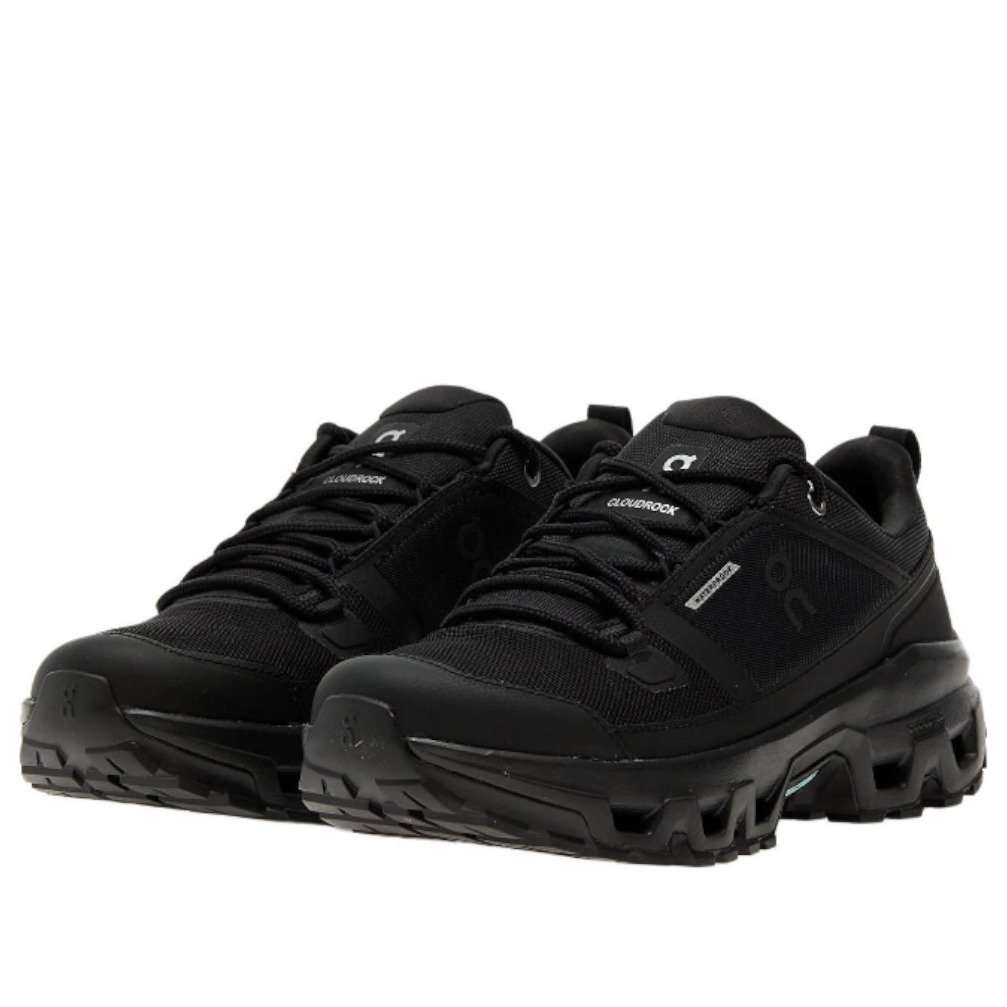 The On Running Cloudrock Low Waterproof All Black features a Black/Black colorway. This On Running Cloudrock Low Waterproof was first released for $180.