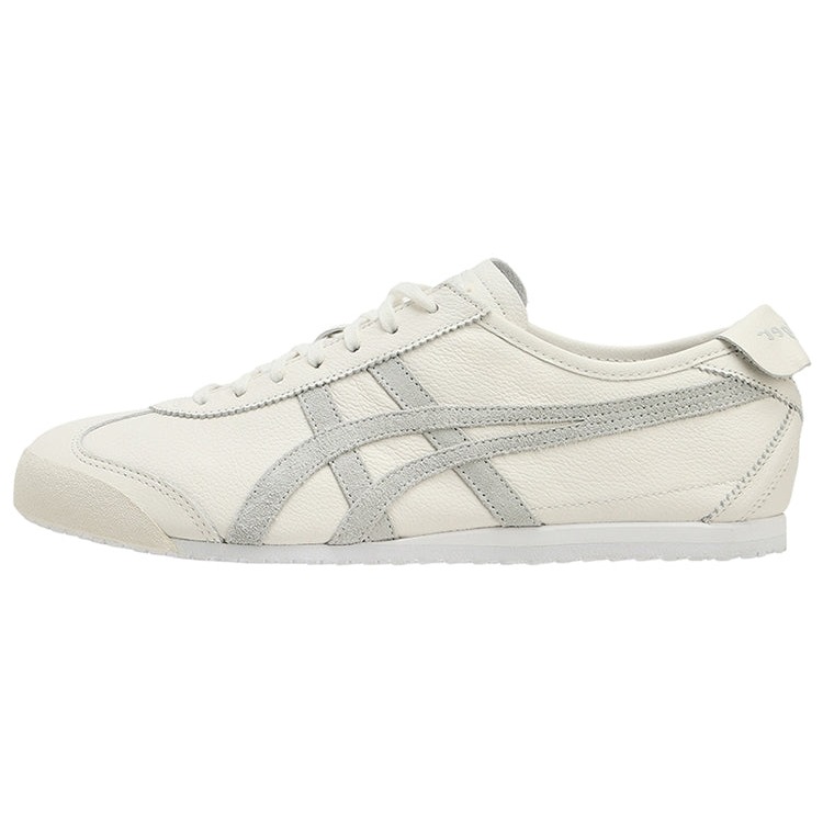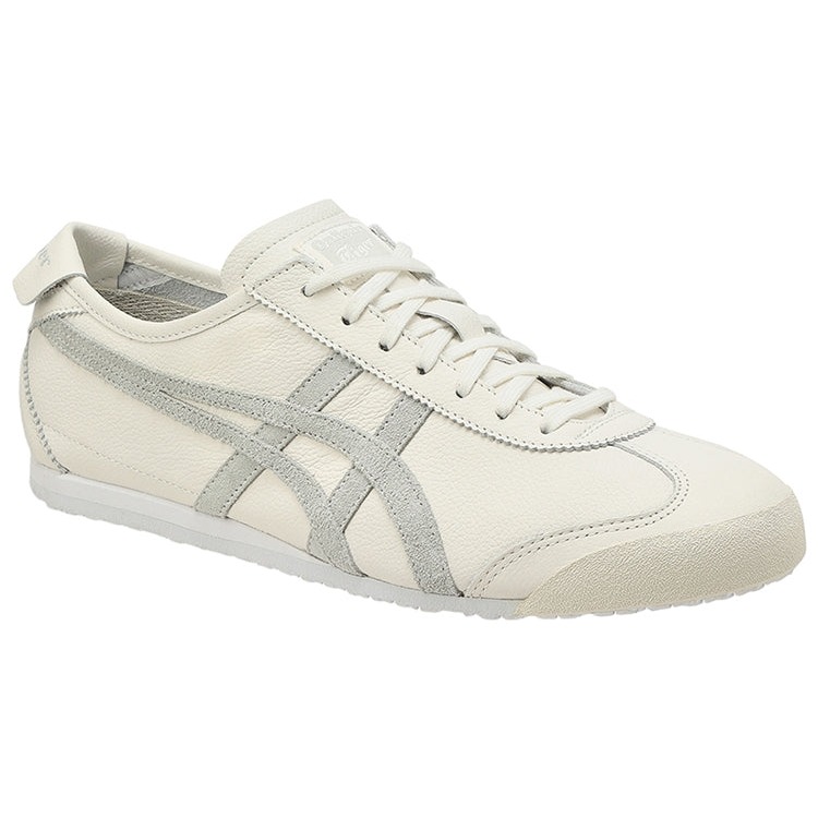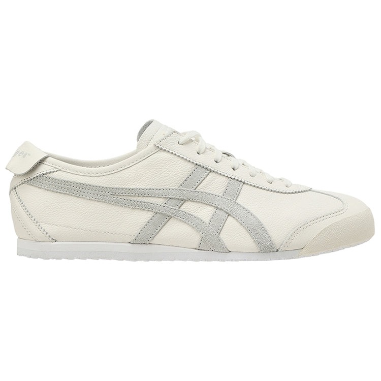 The Onitsuka Tiger Mexico 66 White Light Sage is a performance running shoe that also contains elements from the LIMBER-UP shoe that debuted in 1961. The White Light Sage Onitsuka Tiger Mexico 66 has an upper made of grained leather in white. A thin, t-shaped toe cap appears as an overlay in the same color, and another panel forms the eyestays. There are crisscrosses at the heel for support. The typical tiger stripes that have become synonymous with the brand cross the sides in Light Sage suede, and Tiger branding is found on the heel collar. The tongue bears a subtle logo patch. The shoe sits on a thin, white midsole and outsole.What we think stands out about this sneaker are the Light Sage accents, which are so pale that they almost blend into the white. The Onitsuka Tiger Mexico 66 White Light Sage was released on August 1, 2023, for $130.