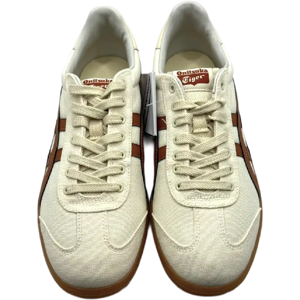 High-fashion kicks don t come cooler than the Onitsuka Tiger Tokuten Cream Caramel. The Japanese fashion brand offers a comfortable lifestyle shoe ready to elevate your footwear wardrobe.Made from calf leather, synthetic leather, and canvas, the Totukens from the Onitsuka Tiger brand are one good-looking shoe. With a regular height midsole for support and rubber outsole for traction, the sophisticated blend of caramel and cream coloring is an earthy, trendy addition to your sneaker collection. Perfect for all seasons, the lace enclosure has cream-colored laces with branding on the tongue. Simple, classic, and elegant while still paying homage to the sports legacy that Onitsuka Tiger honors.We love how this heritage brand has created a low-profile shoe that is contemporary and functional, all in one. Wear them casually or to give an edge to a smart outfit. The Onitsuka Tiger Tokuten Cream Caramel was released on 26 January 2022, priced at $70.