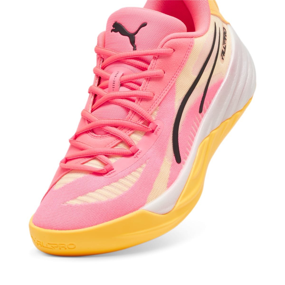The Puma All-Pro Nitro Sunset Glow features a Sunset Glow/Sun Stream/Black colorway. This Puma All-Pro Nitro was first released for $130 on July 01, 2024.