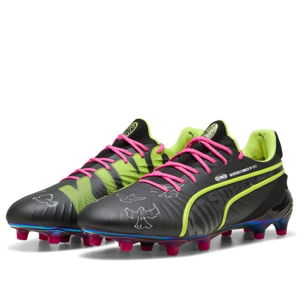 The Puma King Ultimate FG/AG KidSuper Black Electric Lime features a PUMA Black/Electric Lime/Strong Gray/Ravish/PUMA White colorway. This Puma King Ultimate FG/AG was first released for $230 on June 10, 2025.