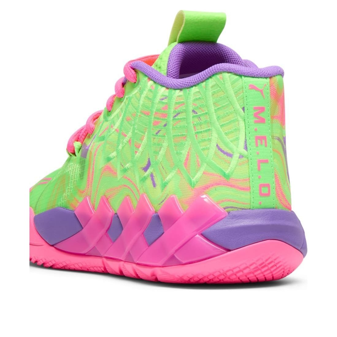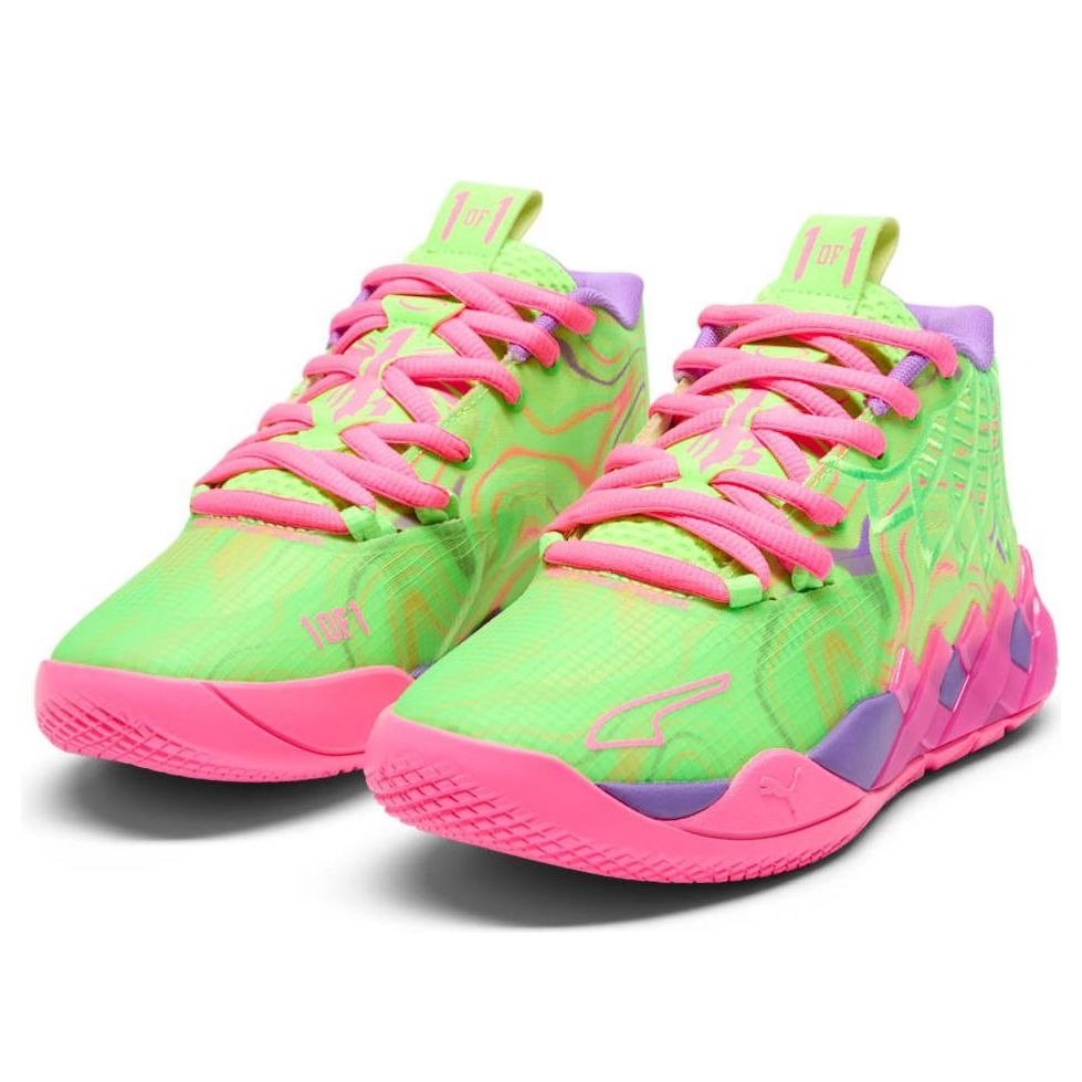 The Puma LaMelo Ball MB.01 Inverse Toxic (GS) features a Purple Glimmer/Knockback Pink colorway. This Puma LaMelo Ball MB.01 was first released for $95 on April 12, 2024.