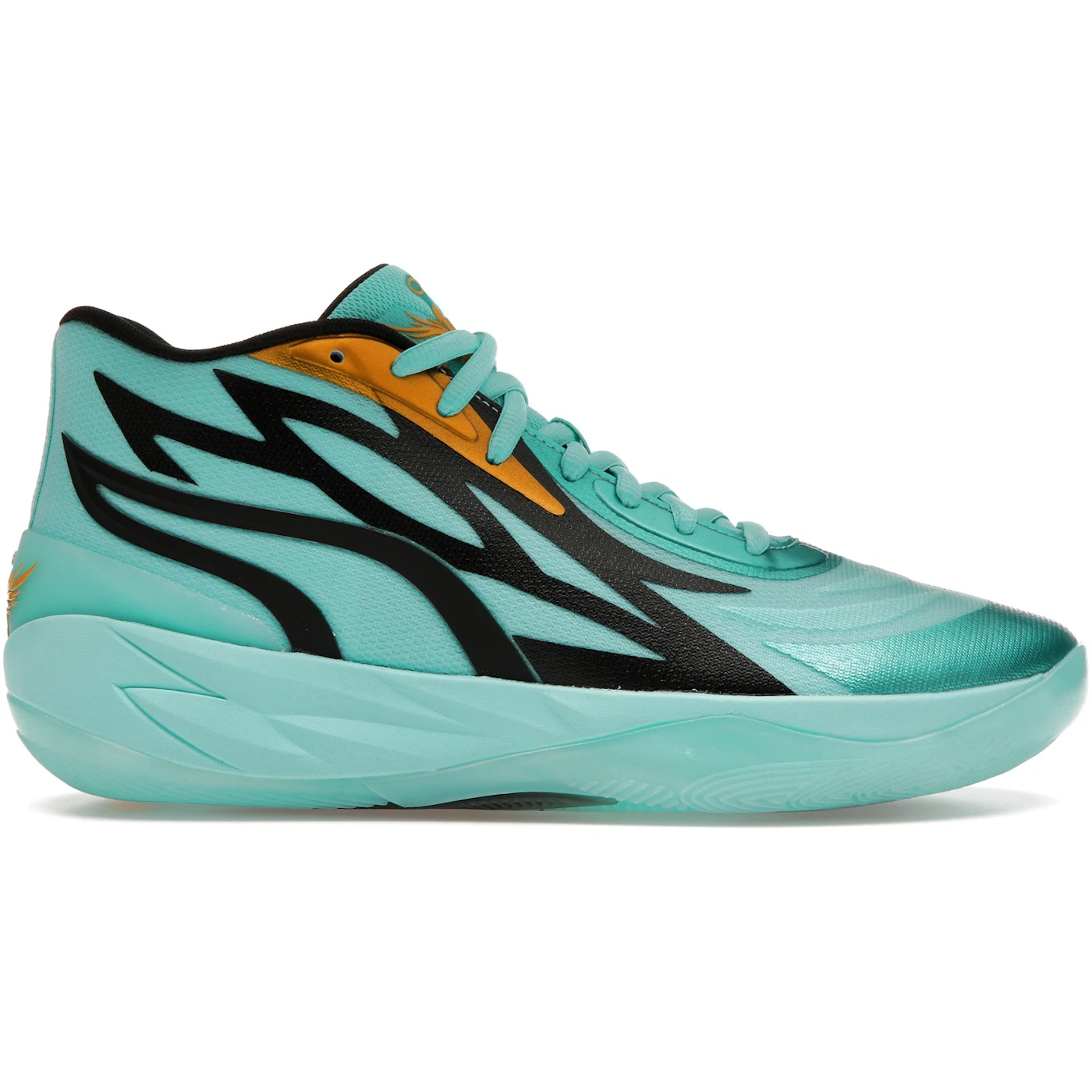 The Puma LaMelo Ball MB.02 Honeycomb is LaMelo Ball’s sophomore signature sneaker. It arrives meticulously engineered to provide traction and well-rounded responsiveness.The Honeycomb Puma LaMelo Ball MB.02 boasts a woven mesh upper for enhanced breathability. It is supported by a comfortable midsole featuring NITRO foam for lightweight responsiveness. The design features an eye-catching black and Elektro Aqua colorway. It has mesh paneling and an all-over graphic print that is complemented by a secure lace-up front and branded insole. The rubber sole incorporates a feather-inspired tread pattern that offers improved durability and traction while paying homage to Melo’s signature wings.What our experts love about the Puma LaMelo Ball MB.02 Honeycomb are the mid-top cut, engineered mesh upper, TPU heel clip, and MB.02 branding that complete the distinctive look. This sneaker is a stylish and high-performance addition to PUMA’s lineup. The was released on the 10th of March 2023 for $130.