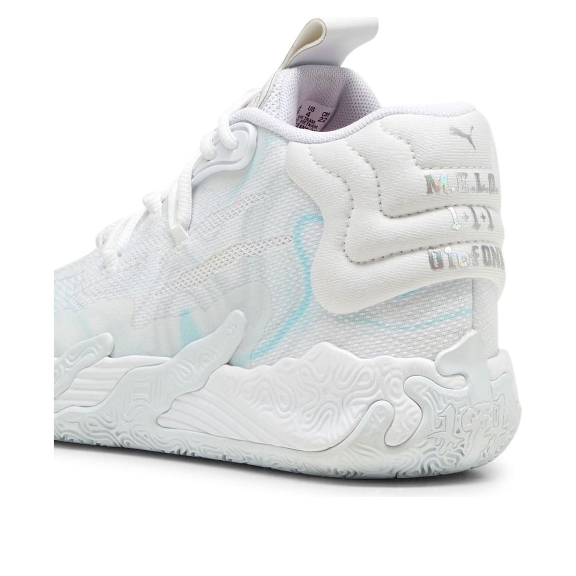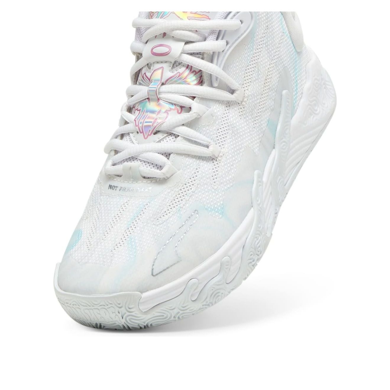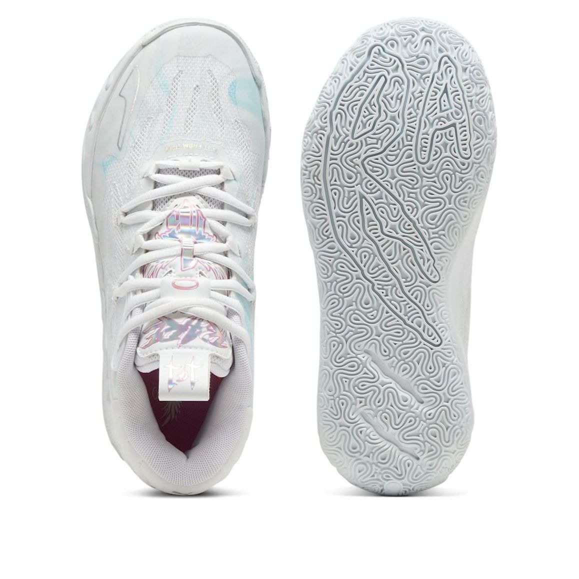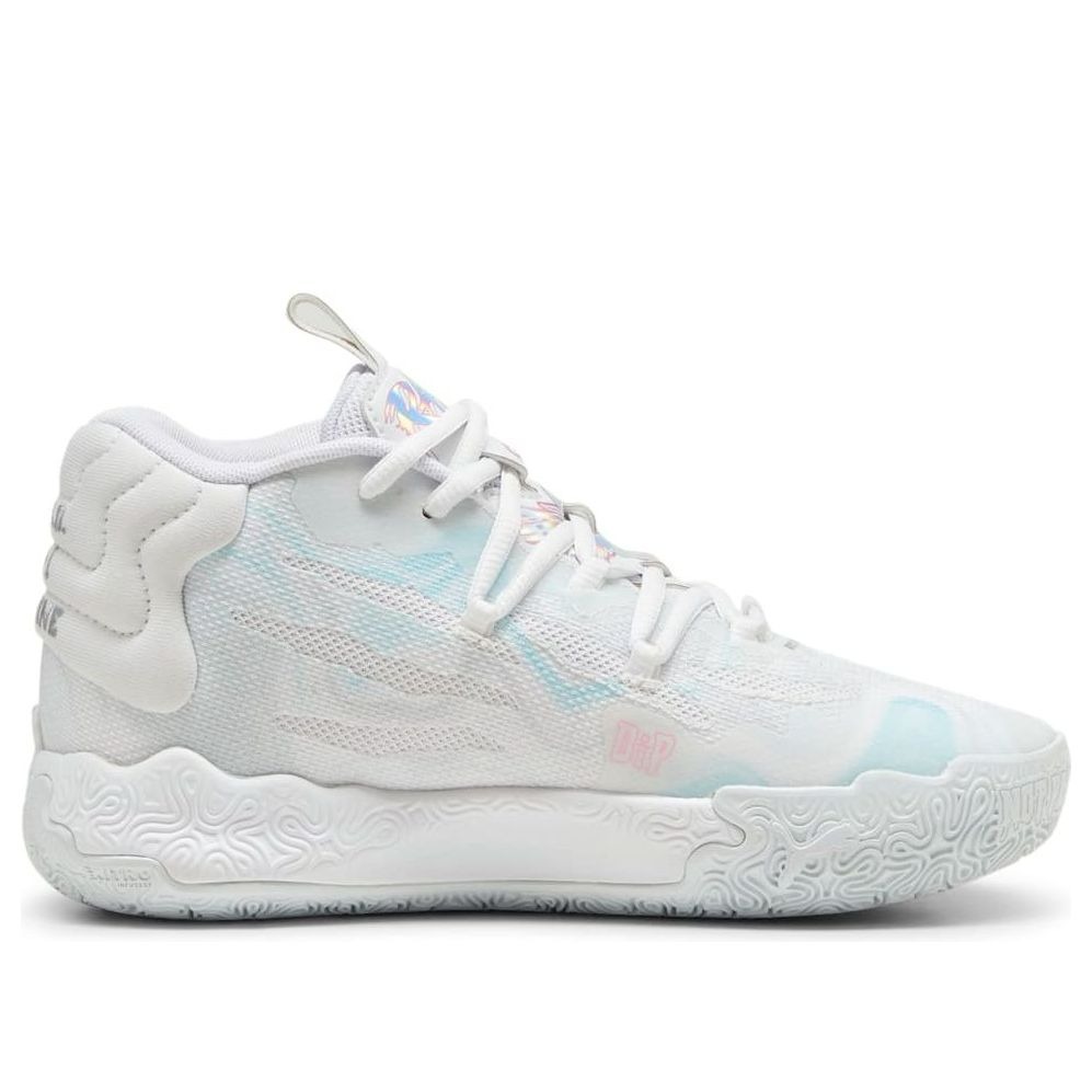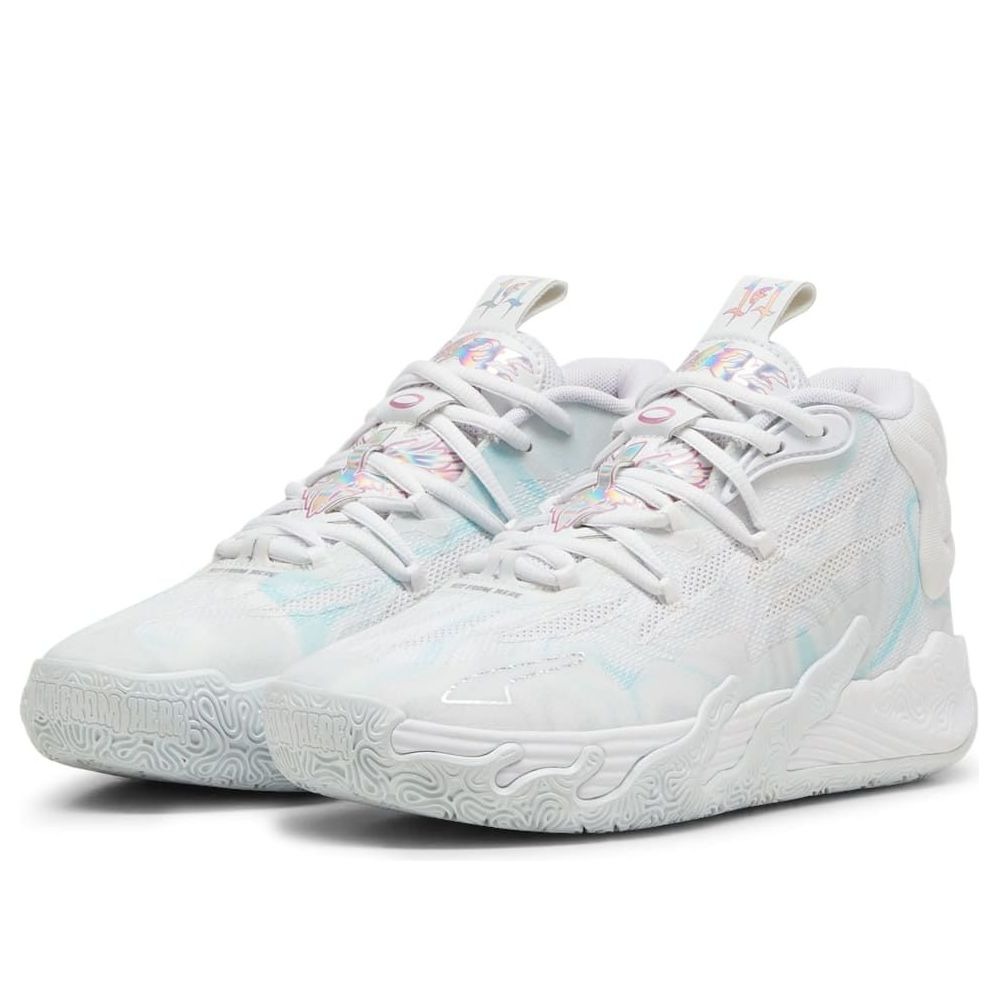The Puma LaMelo Ball MB.03 Iridescent (GS) features a White/Dewdrop colorway. This Puma LaMelo Ball MB.03 was first released for $110 on March 29, 2024.