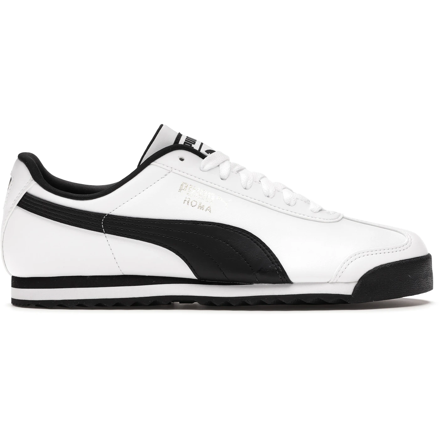 The Puma Roma Basic White features a White/Black colorway. This Puma Roma Basic was first released for $60.