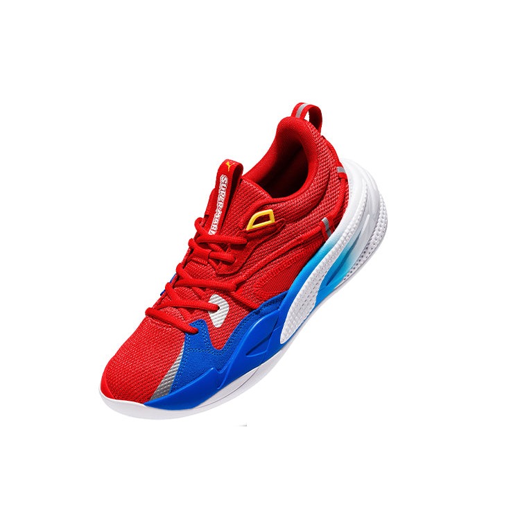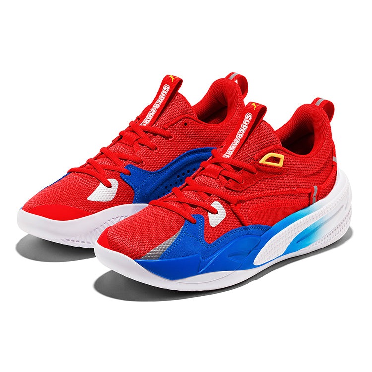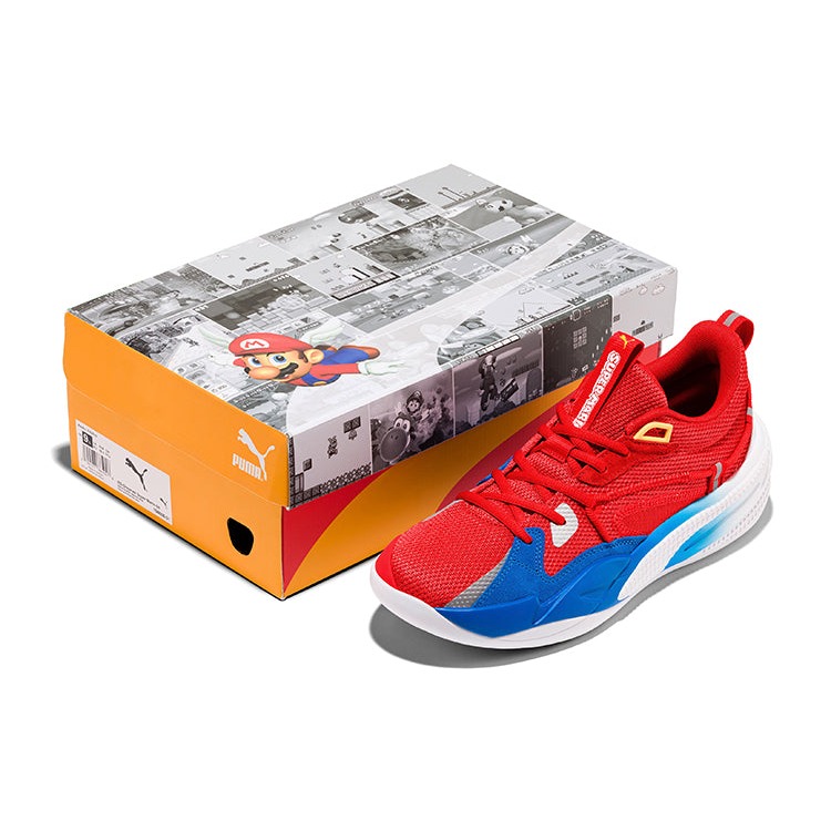 The Puma RS-Dreamer Super Mario 64 celebrates a collaboration between Super Mario Bros., which celebrated its 35th anniversary, and Nintendo. The majority of the Puma RS-Dreamer Super Mario 64s 5/8-cut uppers are in red, yellow, Gradient Blue, and white, which make their way onto the ProFoam midsole and front lace support. Mario branding arrives in the form of a Super Mario Bros. label at the tongue, a Mario Super star graphic at the heel, and insoles depicting scenes from the game. The Puma RS-Dreamer Super Mario 64 was released on September 4th, 2020, at a retail price of $125.