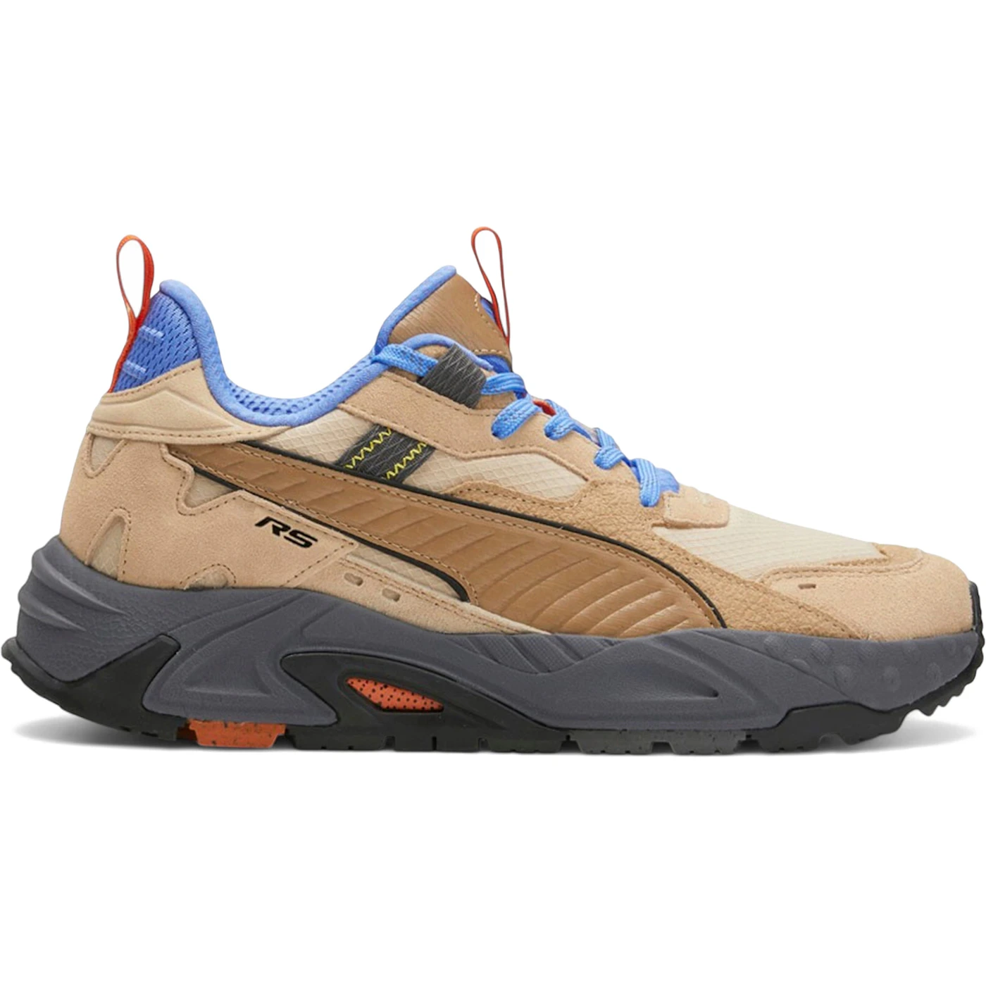 The Puma RS-Trck Explore Light Sand features a Light Sand/Tiger’s Eye/Blue Glimmer colorway. This Puma RS-Trck was first released for $160 on February 09, 2023.