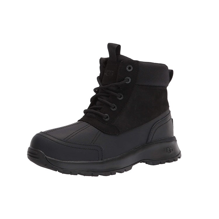 The UGG Emmett Duck Boot Black features a Black colorway. This UGG Emmett Duck Boot was first released for $150 on June 24, 2020.