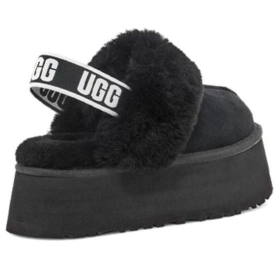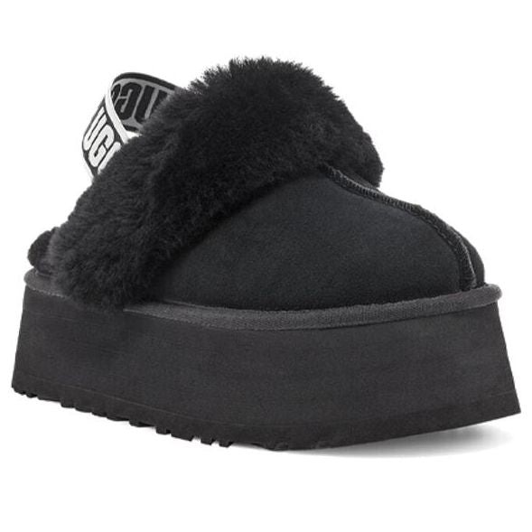 The UGG Funkette Slipper Black offers a playful spin on UGG’s signature slipper design. Featuring a platform sole and a bold black-on-black look with contrasting white branding, this slipper is perfect for anyone looking to add a bit of attitude to their at-home or casual style. Made from rich suede and lined with UGGpure wool, it provides the same comfort and warmth that UGG is famous for, while the platform adds an extra touch of trendy style. The Funkette Slipper combines the cozy slipper aesthetic with a chunky platform, making it a fashion-forward choice for both lounging and streetwear. The black colorway is versatile and chic, while the bold branding and exaggerated silhouette keep it edgy and fun. Whether you’re pairing it with jeans or leggings, this slipper is sure to make a statement. Released on January 11, 2023, the UGG Funkette Slipper Black retailed for $130. Combining trendy design with UGG s signature comfort, this slipper remains a must-have for those looking to elevate their casual footwear game.