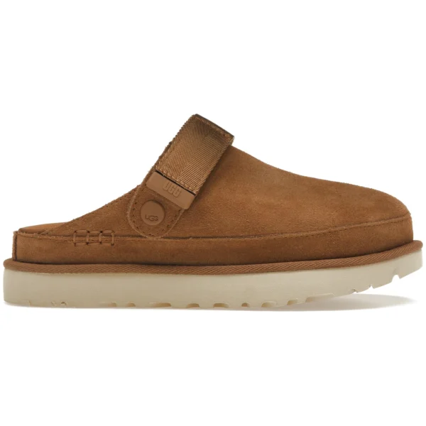The UGG Goldenstar Clog Chestnut (Women’s) merges the timeless appeal of UGG with the comfort and ease of a clog. Made from rich chestnut suede and featuring UGG’s signature plush sheepskin footbed, this clog is perfect for those who want effortless style with all-day comfort. The open-back design allows for easy slip-on wear, making it a practical yet stylish choice for both casual outings and indoor lounging. The Goldenstar Clog offers a modern twist on the traditional clog silhouette, with its chestnut colorway adding a warm, earthy tone that pairs well with a variety of outfits. The durable rubber outsole ensures that this clog is suitable for both indoor and outdoor wear, while the sheepskin lining provides that signature UGG coziness. Released on January 26, 2023, the UGG Goldenstar Clog Chestnut (Women’s) retailed for $130. With its combination of style, comfort, and practicality, this clog has become a go-to for those seeking easy-to-wear footwear without compromising on quality or design.
