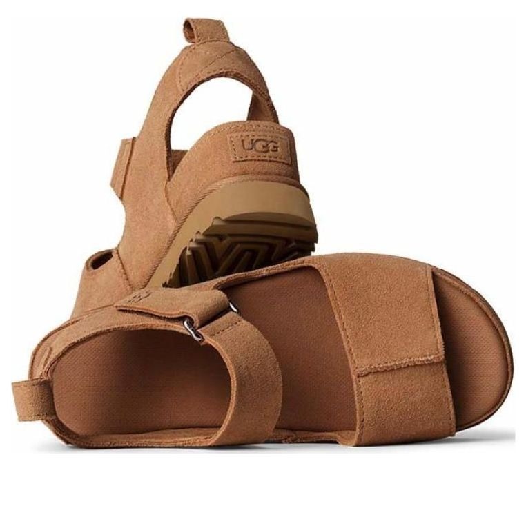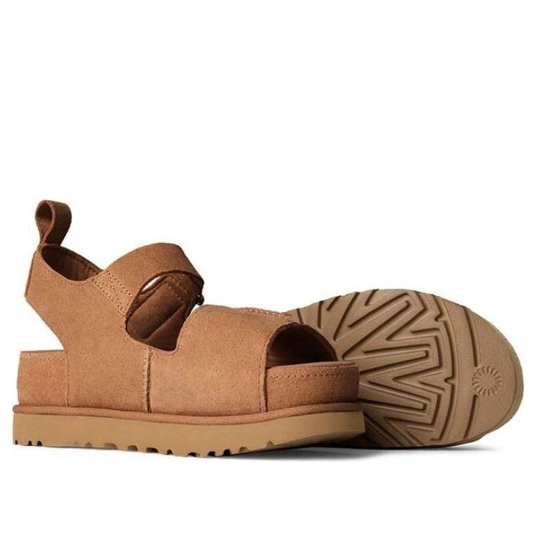 The UGG Goldenstar Hi Sandal Chestnut (Women’s) features a Chestnut colorway. This UGG Goldenstar Hi Sandal was first released for $140.
