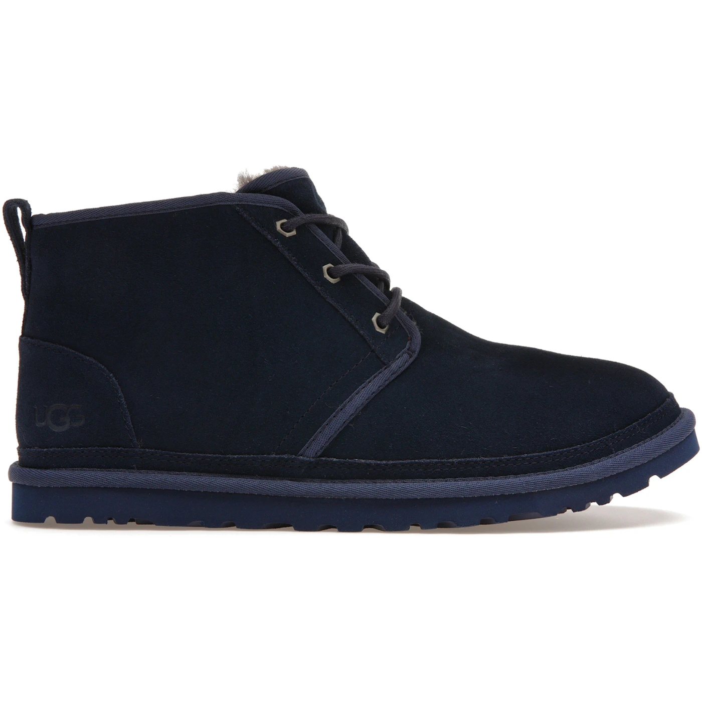 The UGG Neumel Boot New Navy offers the iconic shoe company’s signature slipper-like feel both outdoors and indoors.The upper of the New Navy UGG Neumal Boot is ankle-high and crafted from plush blue suede. Blue suede overlays reinforce the eyestays, foxing, midfoot, and heel counter. A tonal pull tab at the heel eases on/off. Blue cotton rope laces thread through metal eyelets over a blue suede tongue to ensure a snug fit. This upper is bound with 100% recycled polyester fibers, and the UGG logo is heat embossed on the outer heel. The foam footbed offers comfort with every step, and the responsibly sourced EVA outsole sports sunburst grooves to absorb impact and provide grip. What we love most about this pair of ankle boots is the signature UGGplush lining that envelopes your foot in a furry softness. The UGG Neumel Boot New Navy was released on September 1, 2019, for $140 retail.