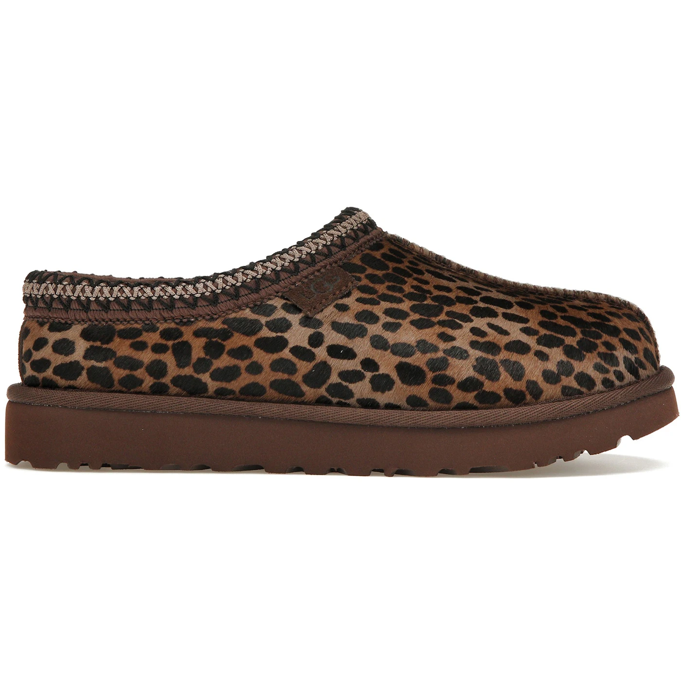 The UGG Tasman Slipper Caspian Burnt Cedar (Women’s) decorates the Tasman silhouette in a bold leopard pattern.The women’s Caspian Burnt Cedar colored UGG Tasman Slipper retains its lightweight design while adding a calf-hair upper. The rough texture of the calf hair creates additional dimension beneath the leopard print, mimicking many traditional moccasin designs. The lightweight outsole is crafted from sugarcane EVA, which has a smaller carbon footprint than petroleum-based foams. Soft wool in Caspian Burnt Cedar lines the inside, while the iconic UGGbraid winds around the collar and the foam footbed adds a pillowy feel underfoot. Like other Tasman models, this version features a slip-on design and a rounded toe. Completing the look, a heat-embossed UGG logo decorates a leather tag sewn into the UGGbraid.Our experts at Newsole appreciate that this shoe is part of Herproject, an initiative that supports women in the workforce. The women s-size UGG Tasman Slipper Caspian Burnt Cedar (Women’s) was released on August 19, 2024, and originally sold for $110.