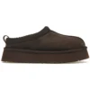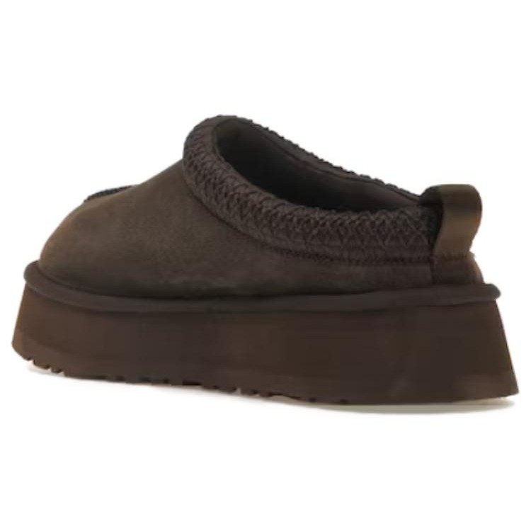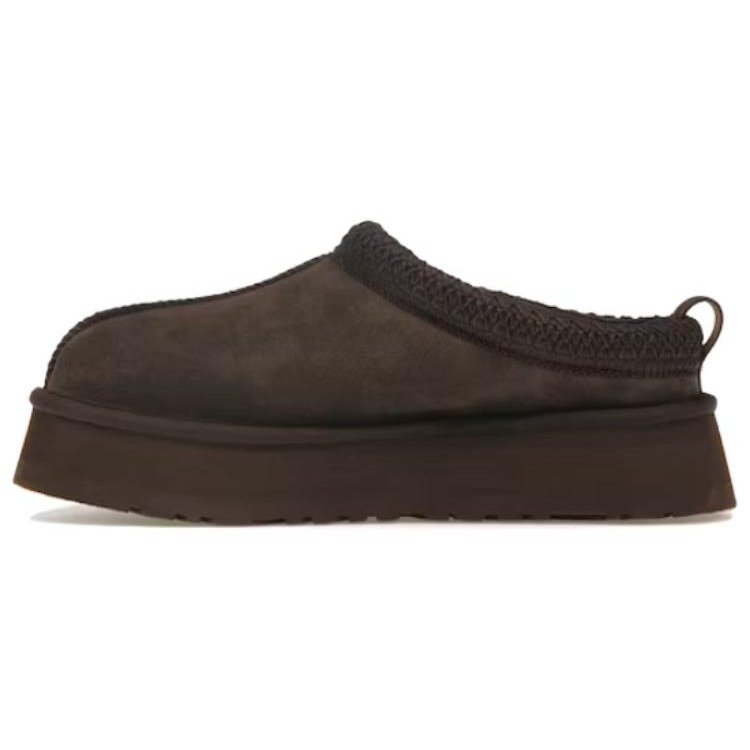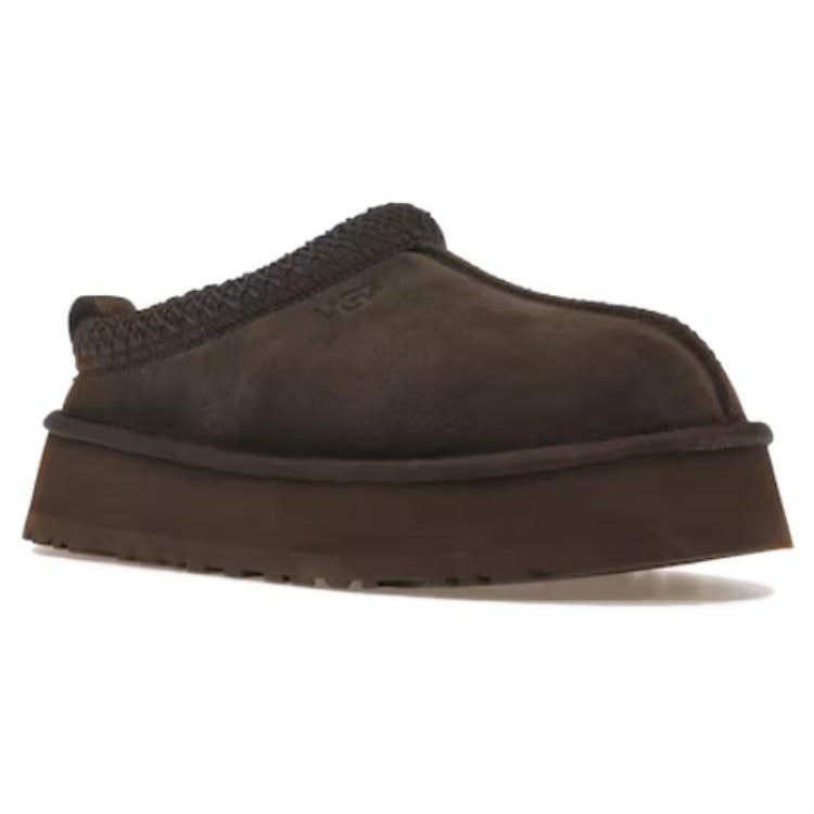 The UGG Tazz Slipper Chocolate (Women’s) is a clog-style slipper that upgrades the Ugg Tasman with a platformed sole.The platform is 1.75 inches thick, which not only adds height to the shoe but also reduces the flexibility of the foam sole. This addition makes the UGG Tazz Slipper feel sturdier than the UGG Tasman models. The upper is made of soft suede, while the outsole is crafted from either material derived from sugarcane or a petroleum source. The lining is made from UGGplush, the label s signature lining blend, which uses 80 percent upcycled wool and 20 percent Tencel. In terms of branding, the UGG logo is heat-embossed on the shoe s lateral side.Our experts like the clog s chocolate-on-chocolate colorway, which sees even the UGG braid painted in this warm brown hue. The UGG Tazz Slipper Chocolate (Women’s) was released on September 30, 2023, and retailed at $130.