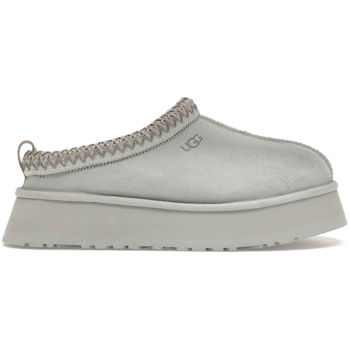 The UGG Tazz Slipper Goose (Women’s) takes the signature Tazz silhouette and paints it in a soft colorway of Goose. This bone-white color resembles Snow Goose or Emperor Goose feathers.The upper is made of buttery suede, while the inner lining is constructed with recycled polyester and wool. Like other versions of the UGG Tazz, this simple slipper draws inspiration from the UGG Tasman. However, the UGG Tazz Goose has a 1.75-inch-thick platform, which makes the fit feel slightly less flexible underfoot. Notable details include the UGGbraid winding around the collar and UGG heat-embossed into the suede on the lateral side panel. A pull tab can be found on the heel, allowing the wearer to tug the slipper onto the foot without grabbing the UGGbraid.Our Newsole experts like the addition of cool beige thread into the UGGbraid. It complements the shoe s Goose colorway. The women s size UGG Tazz Slipper Goose (Women’s) was released on December 13th, 2023, and retailed at $130.
