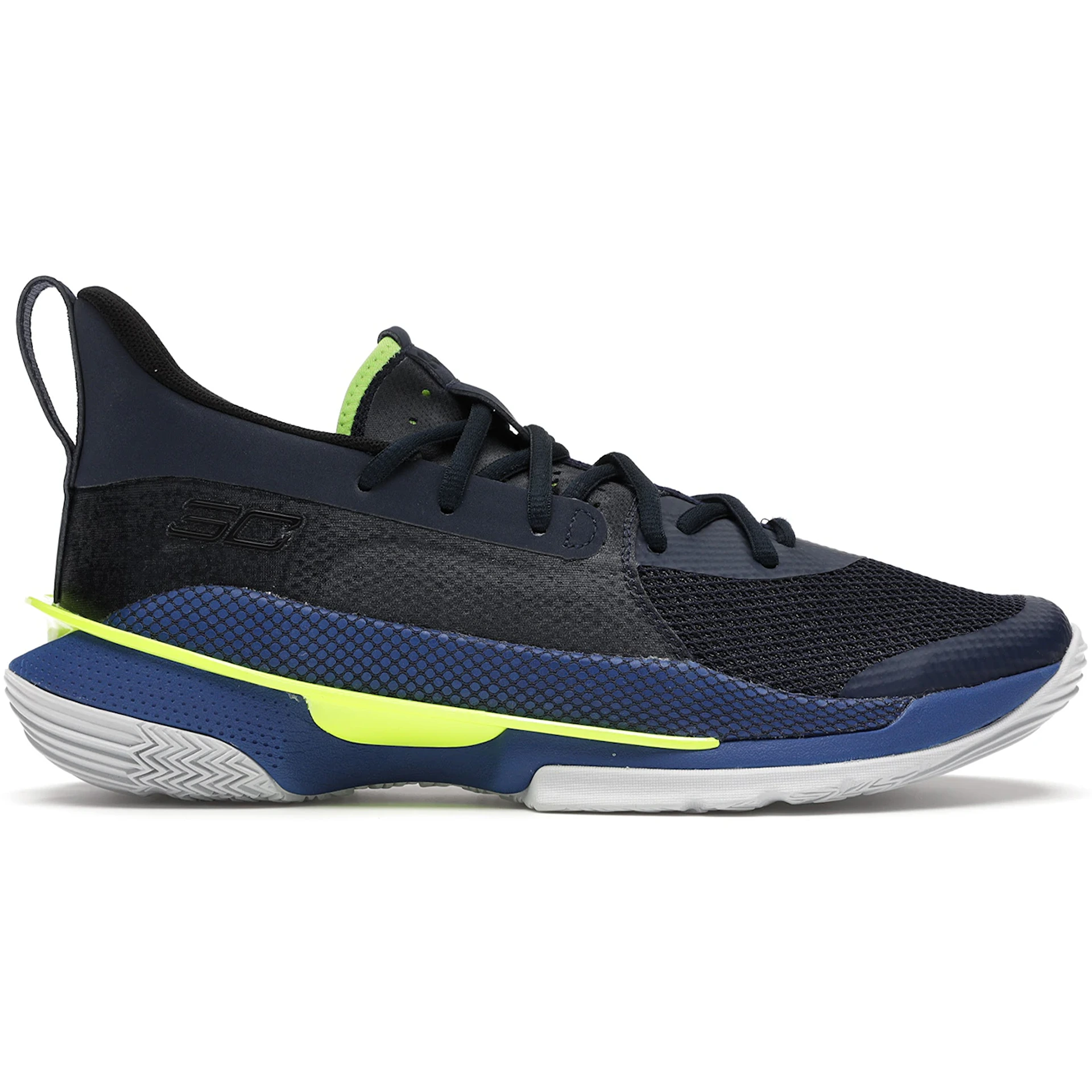 The Under Armour Curry 7 Dub Nation features a Royal/Academy-Hi Vis Yellow colorway. This Under Armour Curry 7 was first released for $150 on December 13, 2019.